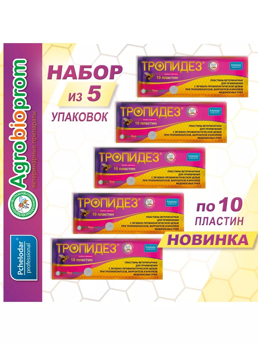 Эти пластины - настоящая находка для пчеловодов, которые стремятся к высокой продуктивности своих пчел и защите их от вредителей. Благодаря инновационной формуле, разработанной на основе биоразлагаемых компонентов, пластины Тропидез обеспечивают надежную защиту пчел от тропилелапсоза, варроатоза, браулеза.