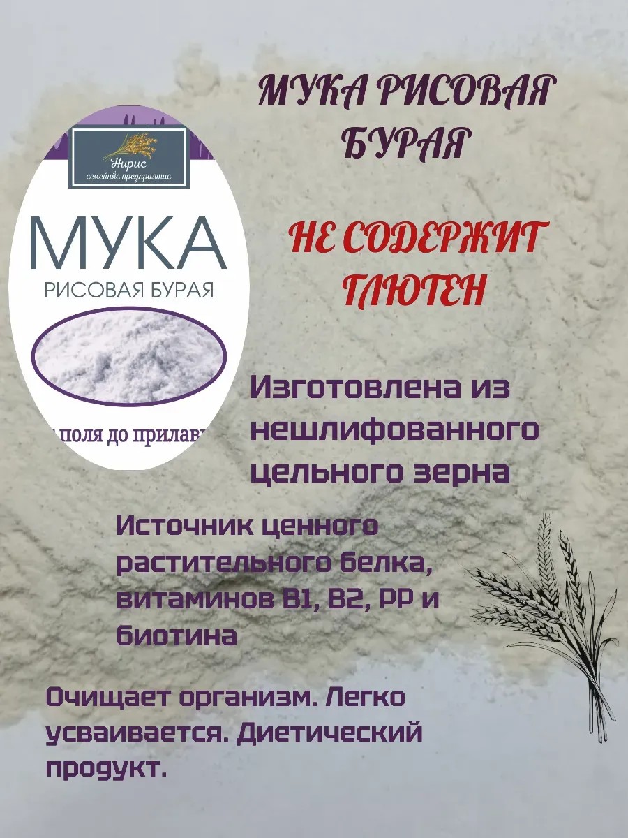 Мука из бурого риса цельнозерновая Семейного предприятия «НИРИС» является идеальным выбором для здорового питания. Эта рисовая мука обладает неповторимым нежным вкусом и обеспечивает полезные питательные вещества для организма. Благодаря своему высокому качеству и цельнозерновой структуре, бурая рисовая мука сохраняет все полезные свойства рисовых зерен. Она содержит витамины, микроэлементы и клетчатку, так как изготовлена из нешлифованного цельного зерна. Наша мука не отбеливается и не просеивается. Бурая рисовая мука - источник биологически ценного растительного белка, витаминов В1, В2, РР и биотина, а также микроэлементов: натрия, калия, магния, фосфора, цинка. При низком содержании жиров, она хорошо насыщает, что делает ее диетическим продуктом, полезным для людей, следящих за своим весом. Очищает организм. Благодаря полноценному по аминокислотному составу белка, отсутствию ГЛЮТЕНА и легкой усвояемости рисовая мука идеальна для детского питания. Веганский и вегетарианский продукт. Мука из бурого риса идеально подходит для приготовления различных блюд. Она отлично справляется с выпечкой хлеба, пирогов и печень, куличей. Кроме того, у нее низкий гликемический индекс, что делает ее отличным выбором для людей, следящих за уровнем сахара в крови. Рисовая мука сохраняет первозданный вкус продуктов, так как сама практически не имеет вкуса. Она подходит для приготовления блинов, оладьев, пельменей, домашней лапши. Ее можно добавлять в соусы и крем-супы.