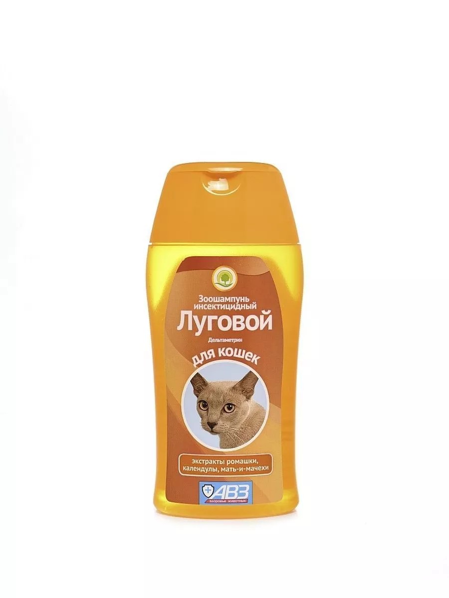 АВЗ Луговой Шампунь инсектицидный для кошек, экстракты календулы, ромашки, мать-и-мачехи, 180 мл