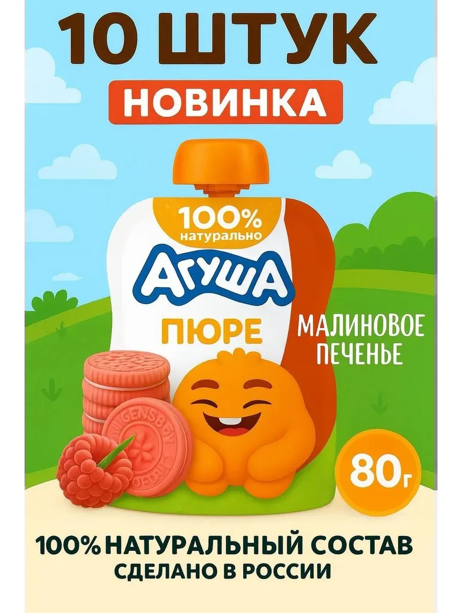 Agusha Raspberry Cookie-flavored puree is a 100% natural dessert especially for older babies.