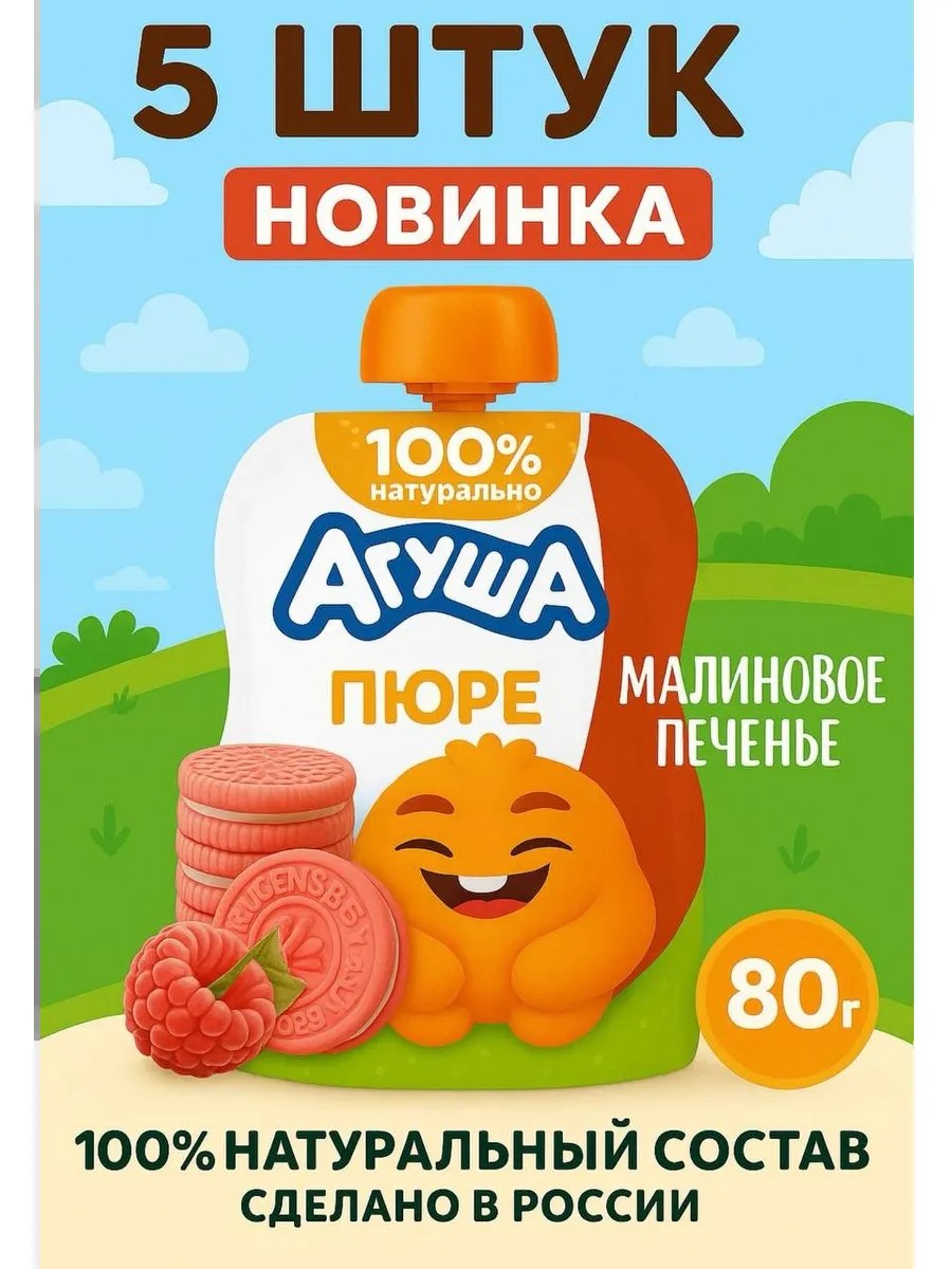 Агуша. Пюре Агуша Малиновое печенье с 8 мес 5х80 г