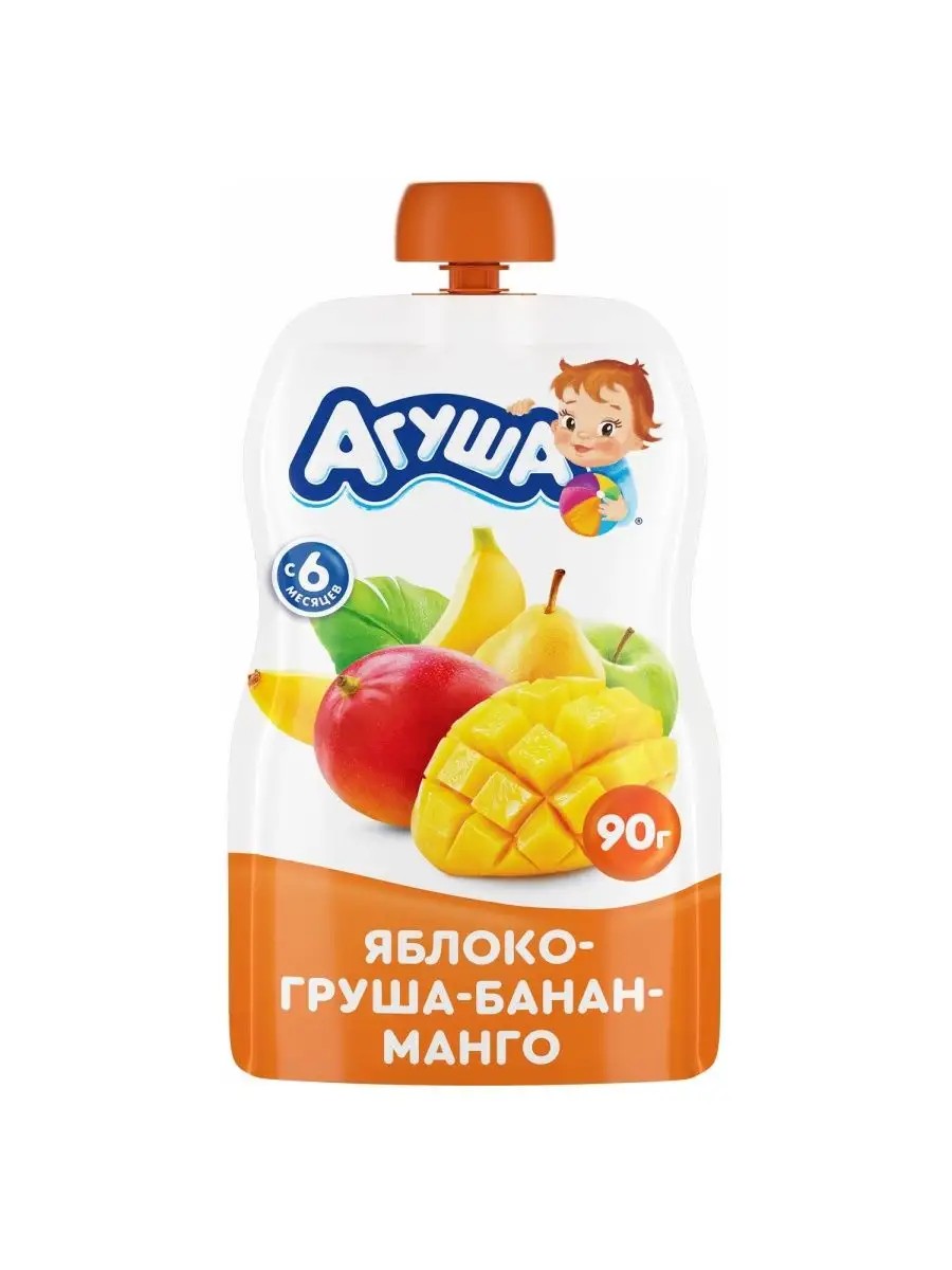 АГУША Пюре яблоко-груша-банан-манго 90г с 6месяцев 6 шт!!
