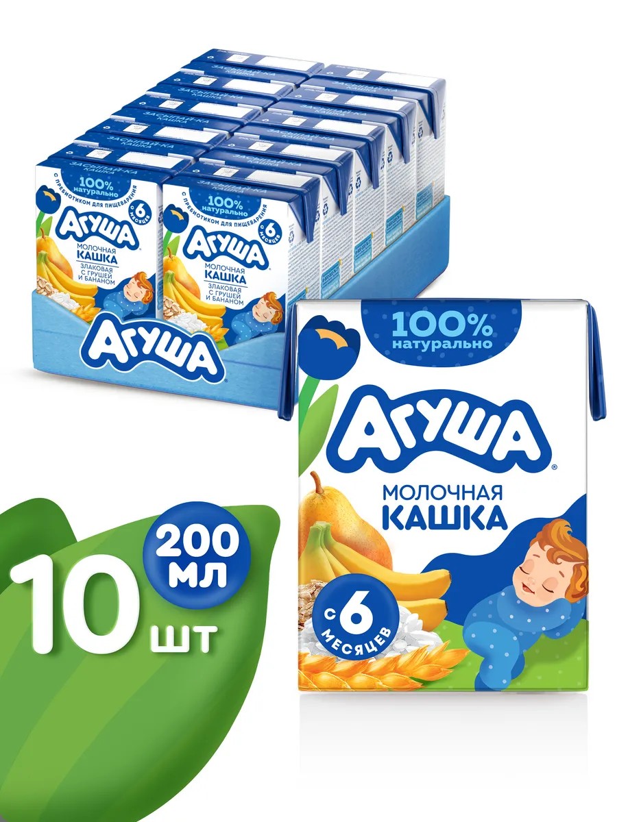 | Полное наименование товара | Каша Агуша жидкая молочная Злаковая Агуша Засыпай-ка Груша-Банан с массовой долей жира 2,7%. Для питания детей старше 6 месяцев. 10 штук по 200 мл |