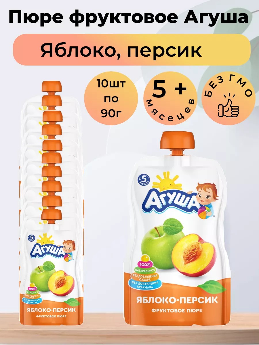 Агуша Пюре фруктовое яблоко-персик 10ш по 90г