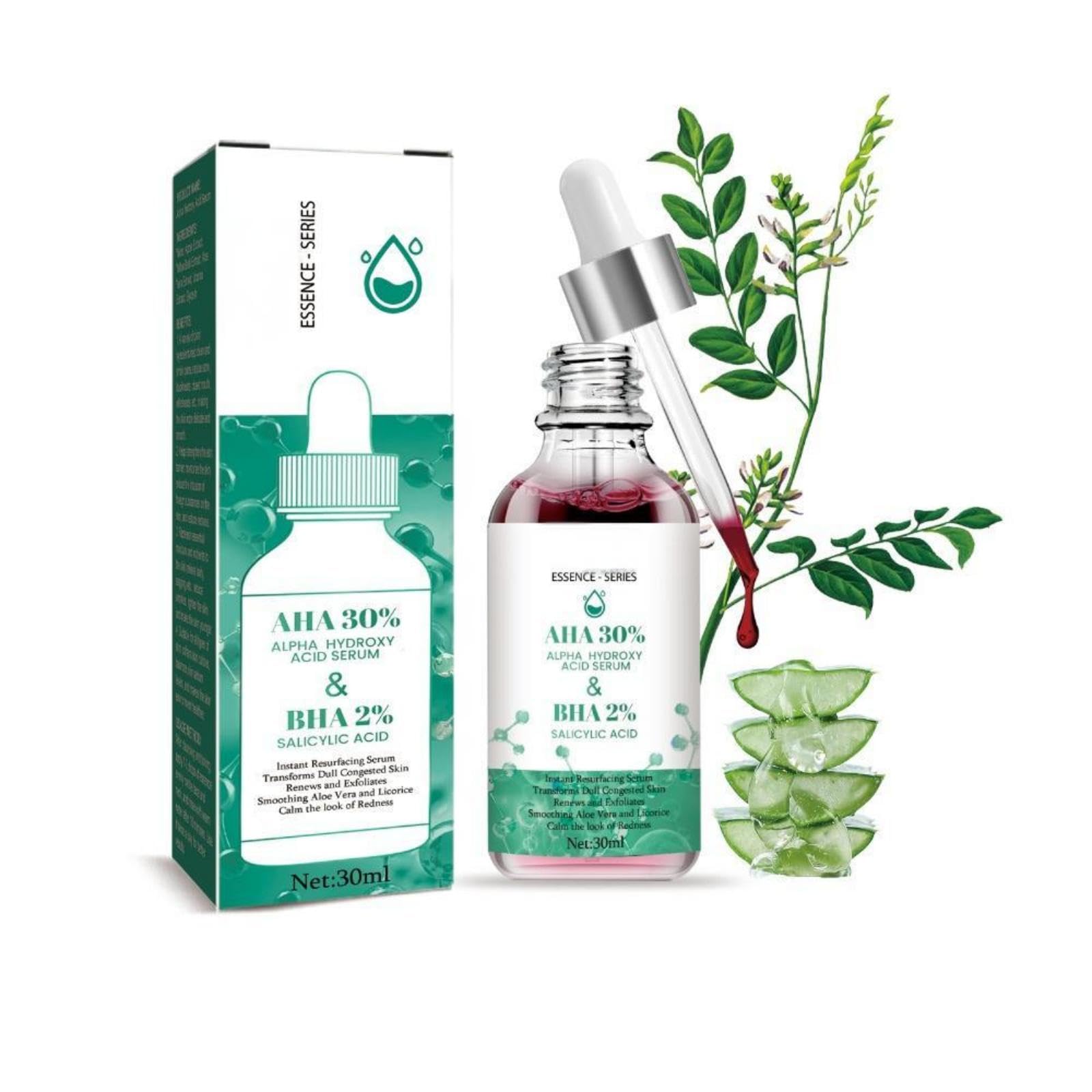 Revitalize Your Winter Skin with Our Advanced AHA BHA Serum As the seasons change, so do the needs of your skin. Combat the harsh effects of fall and winter with our potent yet gentle AHA BHA Serum, specially formulated to restore your skin's radiance and health. How to Use for Best Results: For optimal results, incorporate this serum into your morning and evening skincare routine. After cleansing and toning, apply 1-2 drops to your face and neck using gentle, upward motions. Allow the serum to absorb for 10 minutes, then rinse thoroughly with lukewarm water. Follow with your favorite moisturizer. Always use sunscreen during the day, as AHAs can increase sun sensitivity. Discover the secret to resilient, glowing skin all season long.Safe for Daily Use All Skin Types: This non-irritating, gentle serum is suitable for all skin types, including sensitive skin. For best results, apply 1-2 drops after cleansing, leave on for 10 minutes, then rinse with warm water. Use twice daily. Smoother Firmer Look: Promotes the appearance of collagen production to help minimize the look of fine lines and wrinkles. It helps tighten the skin's texture for a firmer, more youthfully radiant appearance. Intense Hydration Plumper Skin: Formulated with Aloe Extract, this serum delivers deep moisture to combat dryness and flakiness caused by cold weather. It helps improve skin elasticity, leaving your face feeling supple, soft, and deeply nourished. Fade Acne Scars Blemishes: Visibly reduce the appearance of post-acne marks, dark spots, and uneven skin tone. This serum promotes skin renewal, revealing a smoother, more refined complexion with regular use. Gentle Exfoliation Clear Pores: Our AHA BHA serum with Apple and Willow Bark extracts gently exfoliates dead skin cells, unclogs pores, and helps prevent acne and blackheads. It's a mild yet effective formula perfect for rejuvenating dull winter skin.
