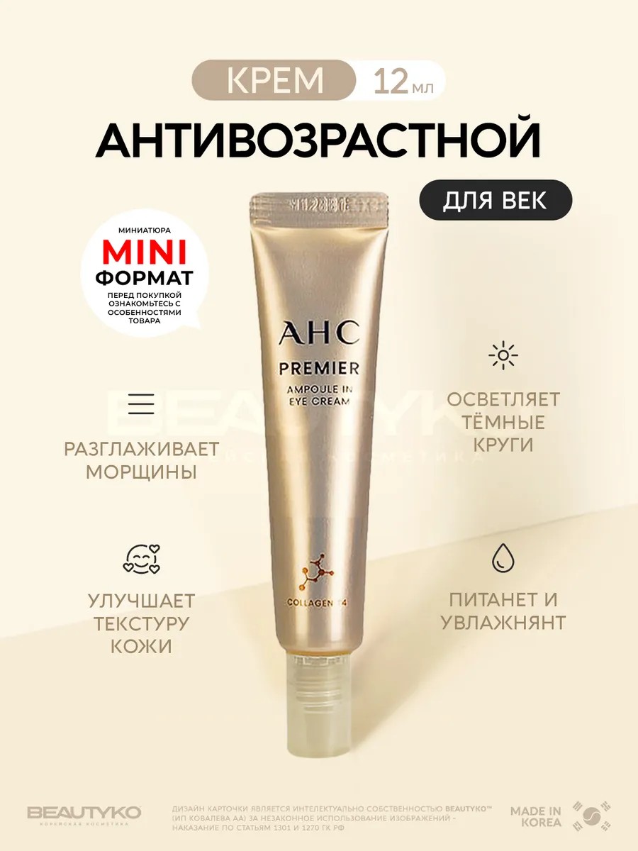Korean anti-aging cream AHC Premier Ampoule In Eye Cream Collagen for eyelids and face smoothes wrinkles, brightens dark circles, and improves skin elasticity.