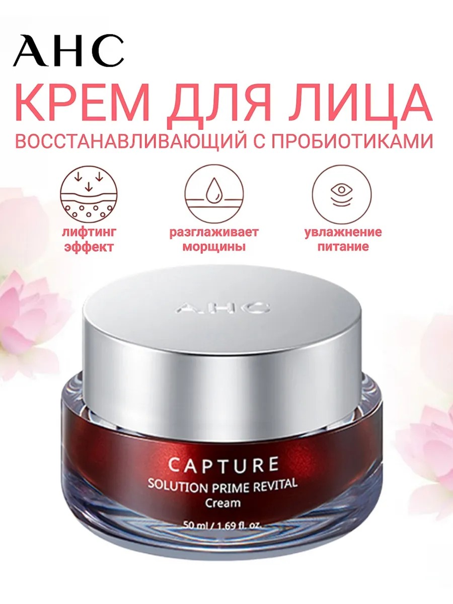 Восстанавливающий питательный крем для лица с комплексом пробиотиков AHC CAPTURE SOLUTION PRIME REVITAL CREAM с богатым составом: