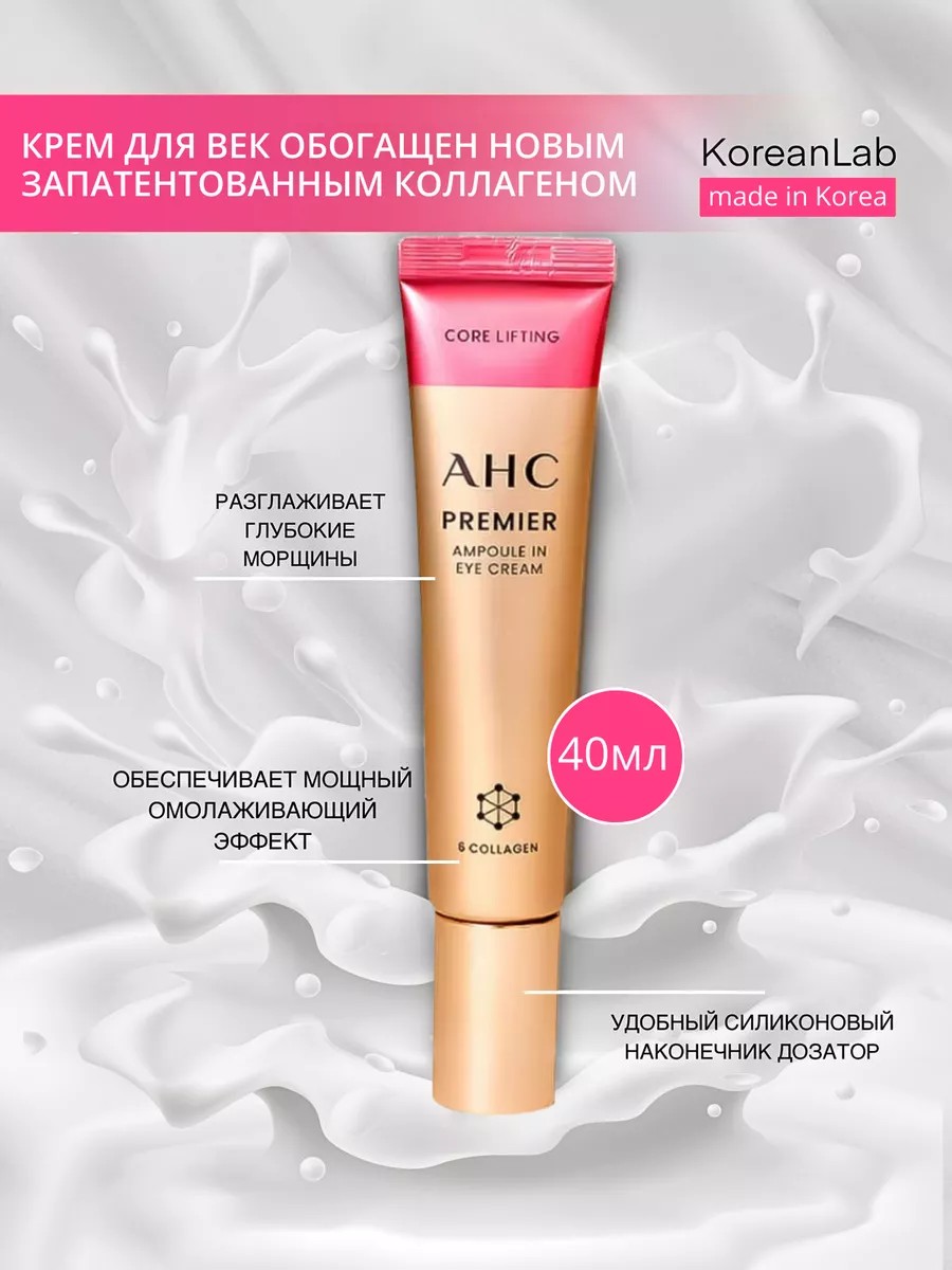 Premier Ampoule-in-Eye Cream enriched with patented collagen smoothes deep wrinkles and provides a rejuvenating effect. This next-generation ampoule-in-eye cream provides the skin around the eyes with essential nourishment, hydration, and density, while ensuring maximum smoothing of fine lines, wrinkles, and crow's feet. It contains specially formulated collagen, enriched with nourishing ingredients identical to natural collagen. With regular use, it reduces dark circles and puffiness, evens out skin texture, and provides a powerful rejuvenating effect thanks to a complex of peptides that enhance the skin's regenerative functions by stimulating the production of its own collagen and elastin. The highly effective AHC formula contains golden oil, kelp extract, green tea, adenosine, and niacinamide. This eye cream penetrates deeply into skin cells and activates microcirculation, smoothes skin texture, improves complexion, and helps normalize skin condition, preventing inflammation and redness. This anti-aging treatment has a pleasant consistency and a subtle scent. The rejuvenating cream is easy to apply and spread onto the skin around the eyes with your fingertips. If needed, it can be used on the nasolabial fold, the entire face, and the neck. Suitable for sensitive skin, it's hypoallergenic. Korean facial cosmetics are a useful gift for any occasion.