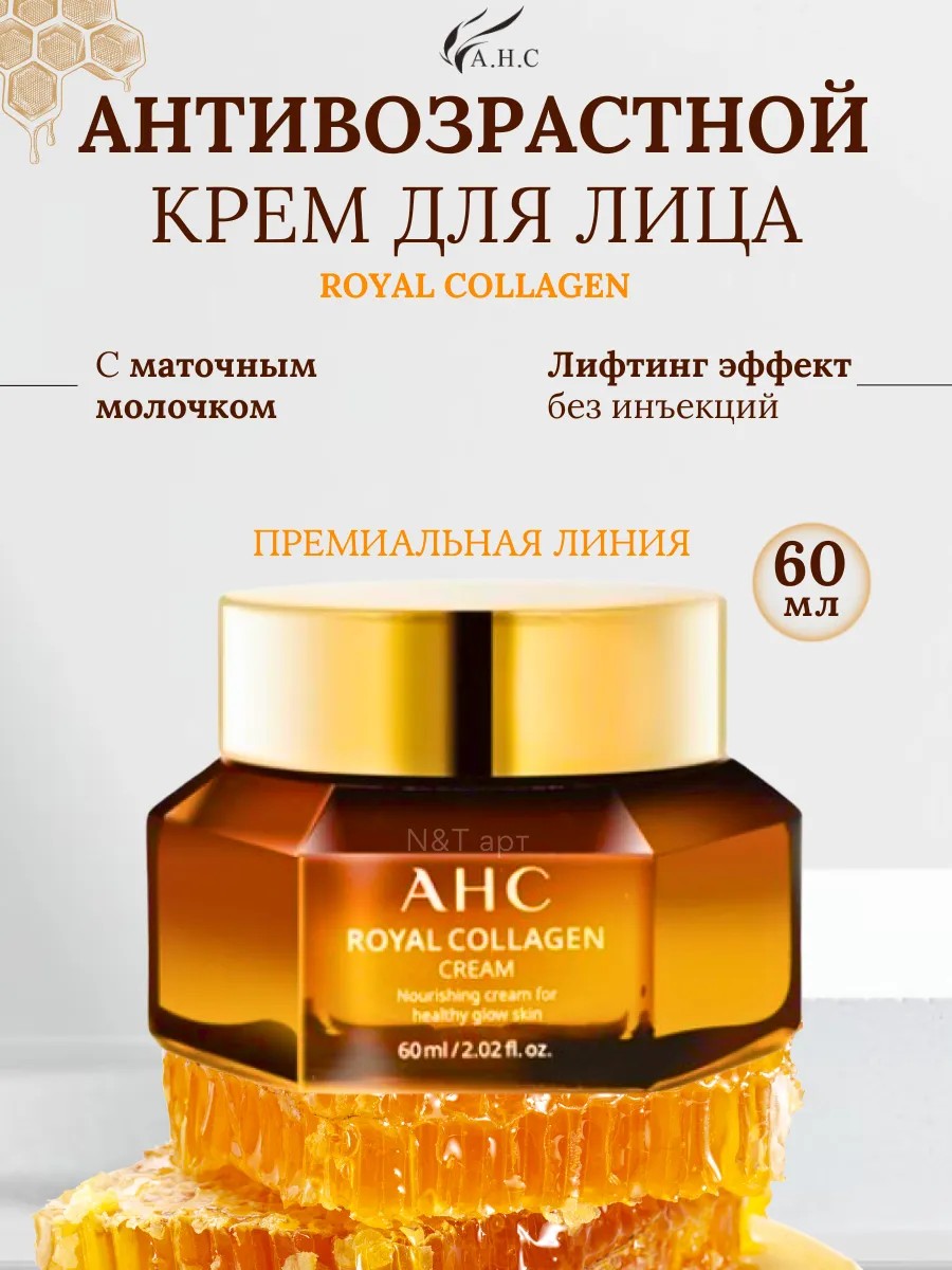 AHC royal collagen - это профессиональный увлажняющий fнтивозрастной питательный крем премиум класса для лица, который эффективно борется с признаками старения кожи и оказывает anti age эффект. Питательный крем сохраняет влагу на поверхности кожи, устраняет чувство сухости и стянутости, активизирует работу собственных коллагеновых волокон, повышает плотность и упругость кожи, сокращает глубину морщин, выравнивает микрорельеф, укрепляет стенки сосудов и оказывает лифтинг-профилактику. Основным компонентом является гидролизованный низкомолекулярный коллаген, за счет которого корейский крем: оказывает общий омолаживающий эффект, укрепляет тургор, укрепляет тонкую, нежную кожу, разглаживает имеющиеся морщинки и уменьшает выраженность заломов, значительно повышает упругость, возвращая коже эластичность, интенсивно увлажняет и напитывает кожу, способствуя длительному удержанию влаги и восполняя водный баланс. Средство имеет легкую текстуру, обеспечивает глубокое проникновение активных компонентов и подходит для очень чувствительной, атопичной кожи. Благодаря содержанию экстракта маточного молочка, который активизирует обменные процессы в клетках дермы, крем восстанавливает водный и жировой баланс, нормализует работу сальной секреции, тонизирует и укрепляет кожу, повышая ее плотность и эластичность. Действие: увлажняет и питает, смягчает кожный покров, повышает плотность кожи, выравнивает микрорельеф, оказывает лифтинг-действие, борется с пигментацией. Средство идеально для людей с возрастными изменениями от первых признаков в 30 – 40 лет до выраженных в 50 – 60 лет, оказывает выраженный подтягивающий лифтинг эффект. Другие активные компоненты: Ниацинамид, Экстракт прополиса, Гидролизованная гиалуроновая кислота, Масла макадамии и какао. Рекомендуется в качестве лифтинг-профилактики для нормальной, сухой и комбинированной кожи, склонной к раздражениям и покраснениям, при наличии розацеа, купероза. Идеально подходит как база под макияж.