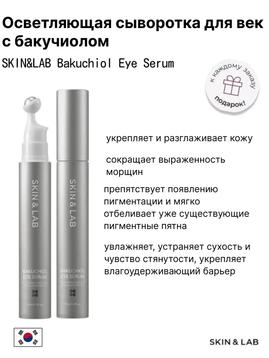 Осветляющая сыворотка для век SKIN&LAB Bakuchiol Eye Serum укрепляет и разглаживает кожу, сокращает выраженность морщин, препятствует появлению пигментации и мягко отбеливает уже существующие пигментные пятна. Уровень pH 4.3-6.3.