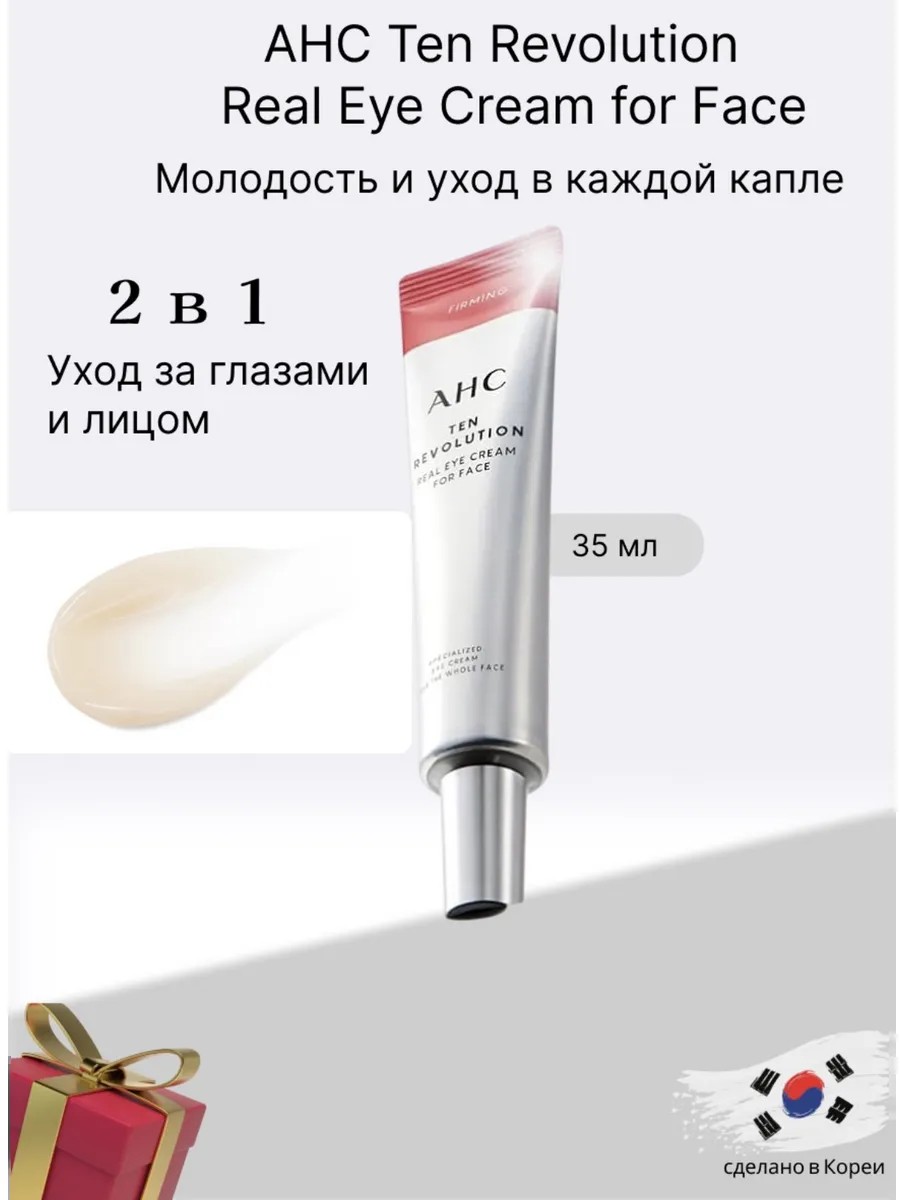 AHC Ten Revolution Real Eye Cream for Face – это инновационное средство 2-в-1, которое сочетает в себе мощный антивозрастной уход за кожей вокруг глаз и полноценный уход за лицом. Этот крем специально создан для борьбы с морщинами, улучшения упругости и интенсивного увлажнения кожи. Разработанный корейскими экспертами в области косметологии, он станет вашим идеальным спутником для ежедневного ухода.