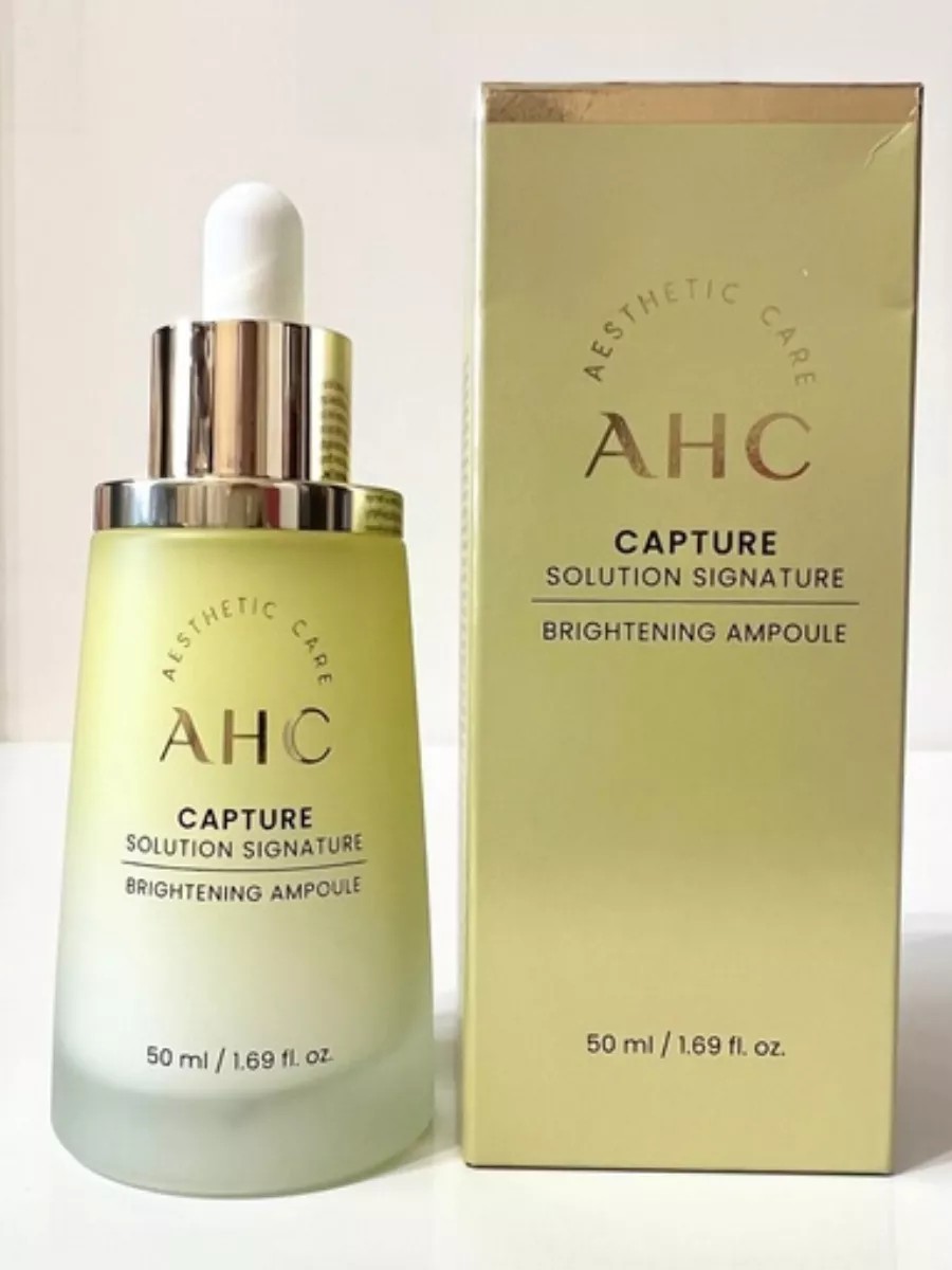 AHC Capture Solution Signature Brightening Ampoule, an innovative whitening facial serum (50 ml) based on niacinamide and adenosine, effectively brightens and radiates skin.