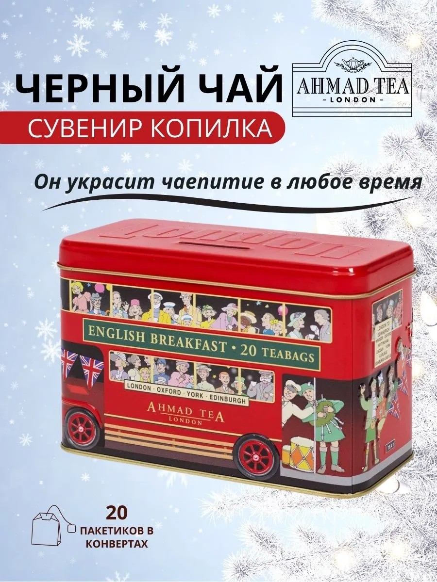 Ahmad "Копилка-автобус" — это идеальное сочетание высокого качества чая и оригинального дизайна. Порадуйте себя или своих близких настоящим британским стилем и классическим вкусом English Breakfast.