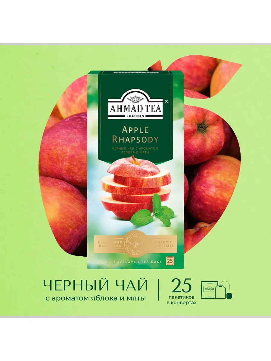 Ahmad Tea Apple Rhapsody, черный чай в пакетиках 25 шт по 1,5г