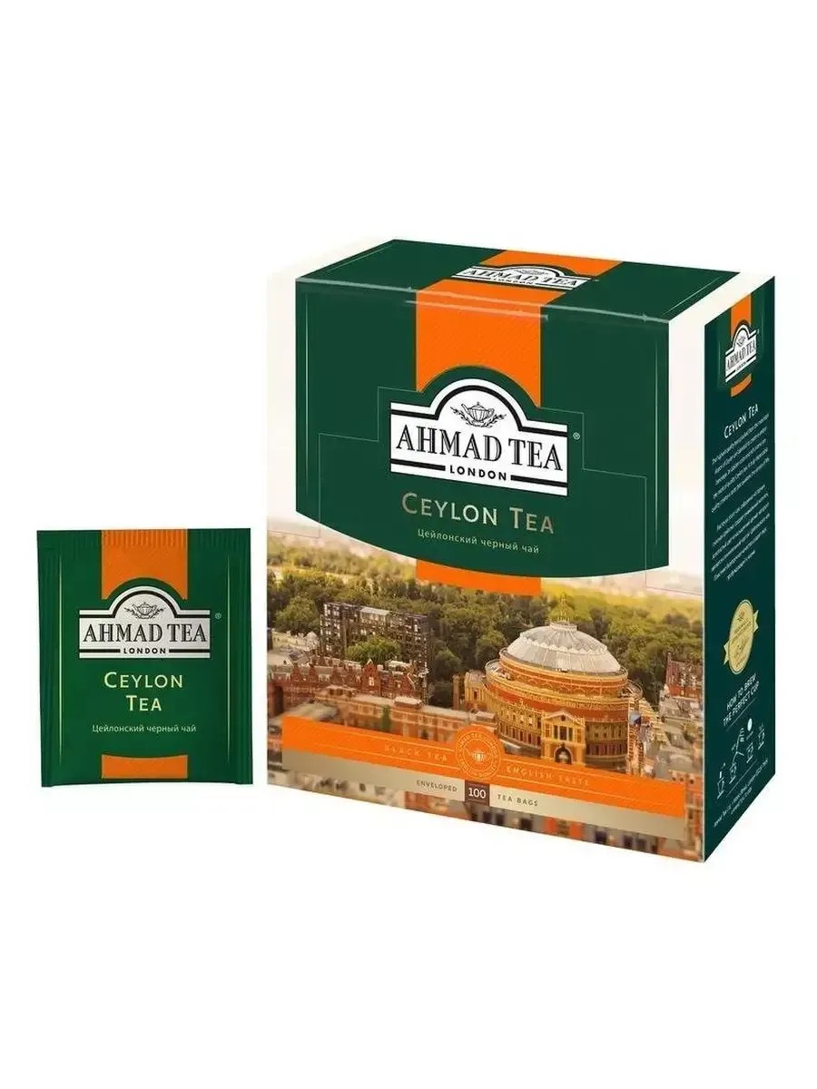 Ahmad Tea чай черный Цейлон 100 пакетиков по 2 гр. В комплекте 1 упаковка. Богатый вкусом и ароматом высокогорный цейлонский чай из верхних листочков. Вас до глубины души поразит сочетание классического терпкого вкуса, приятного аромата и насыщенного цвета настоя. Этот удивительный напиток изготовлен из отборных чайных листьев, собранных на горных плантациях на острове Цейлон. Они были собраны вручную и высушены под жарким солнцем, поэтому приобрели такие чудесные качества. Чай будет прекрасно сочетаться с долькой лимона или с молоком. Напиток согреет в холодные дни и займет достойное место в центре обеденного стола, за которым соберутся ваши друзья и близкие.