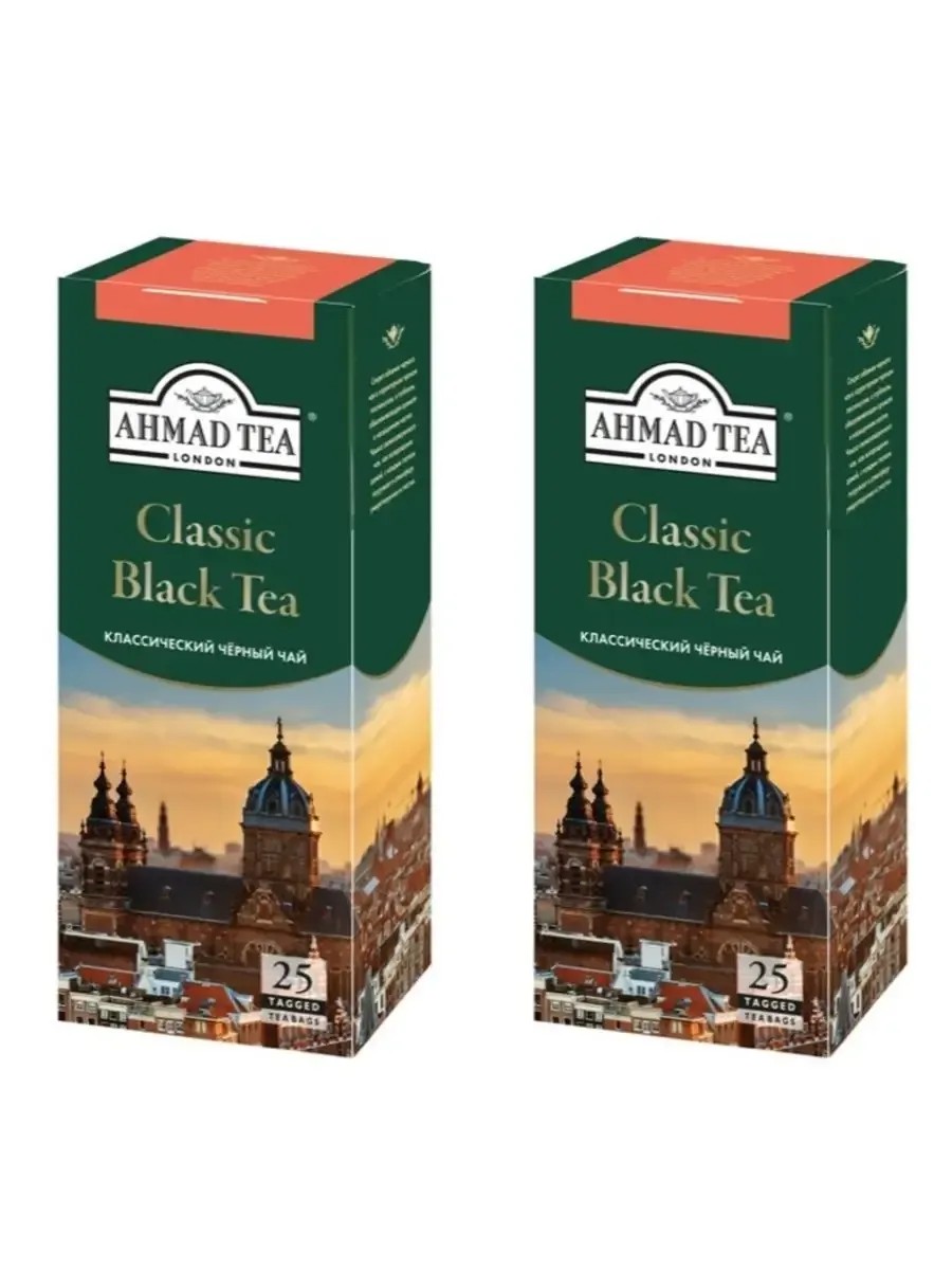 Ahmad Tea, Classic чай черный. В комплекте 2 упаковки по 25 пакетиков. Секрет обаяния черного чая в характерном терпком послевкусии, в глубоком, обволакивающем аромате и насыщенном настое. Чашка свежезаваренного чая, как возвращение домой, с каждым глотком погружает в атмосферу умиротворения и счастья. В пакетиках Ahmad Tea используется только листовой измельченный чай высшего качества. Истинный ценитель чая знает, что в основе разнообразия вкусов от Ahmad Tea всегда лежит безупречное качество чая.