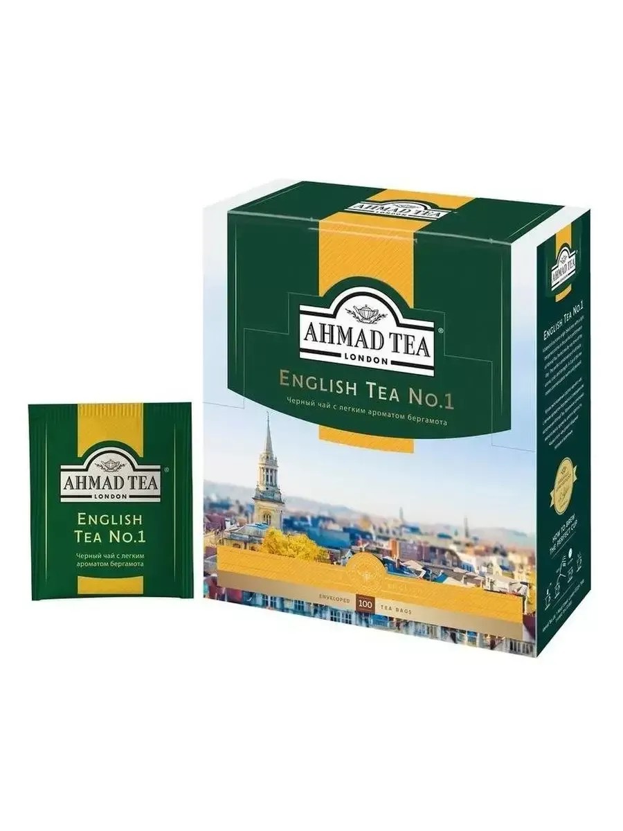 Ahmad Tea Black Tea No. 1. Bergamot. 100 tea bags, 2 grams each. One package included. A cup of this tea makes conversation warm and pleasant. A blend of exclusive black tea varieties with a subtle bergamot aroma, perfectly crafted by Ahmad Tea. A wonderful tea for any time of day. The perfect combination of soft taste, aroma, color, and strength. Ahmad Tea bags use only the highest-quality loose-leaf crushed tea. A true tea connoisseur knows that the impeccable quality of Ahmad Tea always underlies the diversity of flavors from Ahmad Tea. Thanks to a unique quality control system, the English company Ahmad Tea Ltd. ensures the consistency of impeccable quality and taste of Ahmad Tea tea year after year, in any country around the world.