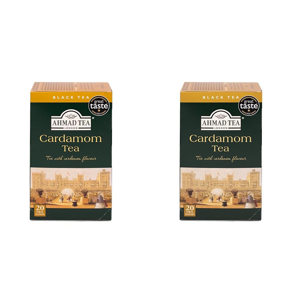 : Our Cardamom Tea is a particularly flavorful, exotic tea that will delight fans of our Earl Grey or Chai Spice. It's our best-selling black tea worldwide. Our tea masters produce a black tea blend for this tea using high-quality tea leaves from Kenya. This gives the infusion its fresh yet mature character—an excellent base for the particularly spicy and slightly minty green cardamom. We use a special cardamom spice that complements black teas with its spicy warmth. Cardamom is a popular spice throughout Asia, the Middle East, and Europe. In India, it's used in both savory and sweet dishes—from rice biryanis to creamy desserts—while in Turkey and Lebanon, it's ground to make coffee. Scandinavians love it for flavoring their baked goods, and British chefs have recently been experimenting with cardamom and chocolate. However, at Ahmad Tea, we believe cardamom tastes best in a cup of tea, where its exotic aroma truly shines. Our cardamom tea is versatile. Lightly brewed, it tastes like a slightly more exotic Earl Grey. Enjoy it the Middle Eastern way by serving it strong, black, and with plenty of sugar. Or, you can drink it well-brewed with a splash of milk as a rich and soothing tea, similar to a warming chai. Ingredients: Black tea, cardamom flavorTEA WITH PASSION – Our tea masters have been passionately developing our popular blends for four generations. We want to honor the world's most exclusive tea gardens and introduce you to a variety of flavors to awaken your love of tea. HARVEST – We use the finest tea leaves, hand-picked using traditional methods. We are proud to support the Ethical Trading Partnership (ETP) for a fairer, better, and more sustainable tea industry for workers, farmers, and the environment. AROMA PACKAGE – 20 double-chamber tea bags made of natural fibers with a ribbon. Individually wrapped and sealed with aromas, the taste and aroma are preserved for longer. Our tea is halal, kosher, and gluten-free. The tea bags are compostable. ORIGIN - Our cardamom tea is a light black tea blend made with tea leaves from the high-altitude gardens of Kenya and Malawi, as well as Ceylon tea from Sri Lanka, giving it a wonderfully full-bodied character. GREEN CARDAMOM - The cardamom from ginger gives the tea its exotic note. The spicy flavor of this light black tea blend has a refreshing taste reminiscent of Earl Grey and Chai Spice teas. The information below applies to each unit in the pack.Description du produit Notre thé à la cardamome est un thé exotique particulièrement savoureux qui ravira les amateurs de notre Earl Grey ou de notre Chai Spice. C'est notre thé noir le plus vendu dans le monde. Nos maîtres de thé produisent un mélange de thé noir pour ce thé à partir de feuilles de thé de haute qualité du Kenya. Cela donne à l'infusion son caractère frais mais mature - une excellente base pour la cardamome verte particulièrement épicée et légèrement mentholée. Nous utilisons une épice spéciale de cardamome qui complète les thés noirs avec sa chaleur épicée. La cardamome est une épice populaire en Asie, au Moyen-Orient et en Europe. En Inde, il est utilisé dans les plats salés et sucrés – des biryanis de riz aux desserts crémeux – tandis qu'en Turquie et au Liban, il est moulu pour en faire du café. Les Scandinaves l'adorent pour aromatiser leurs pâtisseries, et les chefs britanniques ont récemment expérimenté la cardamome et le chocolat. Cependant, chez Ahmad Tea, nous pensons que la cardamome a meilleur goût dans une tasse de thé, où son arôme exotique prend tout son sens. Notre thé à la cardamome est polyvalent. Légèrement infusé, il a le goût d'un Earl Grey légèrement plus exotique. Dégustez-le à la manière du Moyen-Orient en le servant fort, noir et avec beaucoup de sucre. Ou vous pouvez le boire bien infusé avec un peu de lait comme un thé riche et apaisant, semblable à un thé chai réchauffant. Ingrédients Thé noir, saveur cardamomeTHÉ AVEC PASSION – Nos maîtres de thé développent nos mélanges populaires avec passion depuis 4 générations. Nous voulons honorer les jardins de thé les plus exclusifs au monde et vous faire découvrir différentes saveurs pour éveiller également votre amour du thé. RÉCOLTE – Nous utilisons les meilleures feuilles de thé, cueillies à la main selon des méthodes traditionnelles. Nous sommes fiers de soutenir le Partenariat commercial éthique (ETP) pour une industrie du thé plus juste, meilleure et plus durable pour les travailleurs, les agriculteurs et l'environnement. EMBALLAGE D'ARÔME - 20 sachets de thé à double chambre en fibres naturelles avec un ruban. Emballés individuellement et scellés avec des arômes, le goût et l'arôme sont conservés à long terme. Notre thé est halal, casher et sans gluten. Les sachets de thé sont compostables. ORIGINE - Notre thé à la cardamome est un mélange de thé noir léger composé de feuilles de thé des jardins d'altitude du Kenya et du Malawi ainsi que de thé de Ceylan du Sri Lanka, ce qui lui confère un caractère merveilleusement corsé. CARDAMOME VERTE - La cardamome végétale du gingembre donne au thé sa note exotique. Le goût épicé du mélange de thé noir léger a un goût rafraîchissant qui rappelle le thé Earl Grey et le thé Chai Spice. Les informations ci-dessous s'appliquent à chaque unité du pack.Ahmad Tea Cardamom Tea Black Tea - 20 Teabag Sachets (Lot de 2)