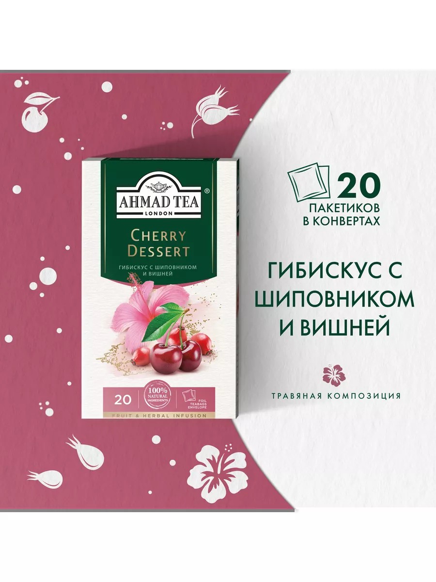 Ahmad Tea Cherry Dessert, травяной чай в пакетиках 20 шт по 2г