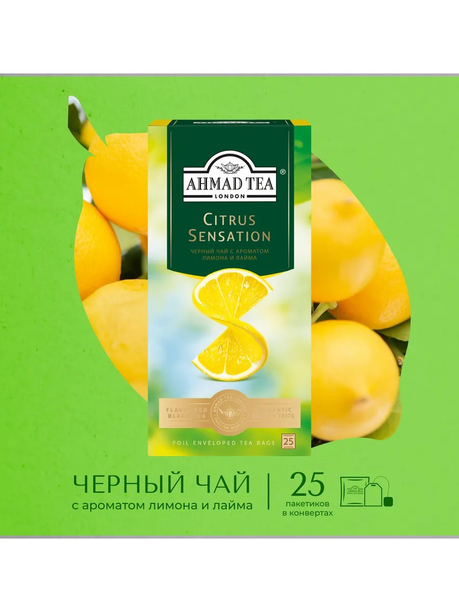 Ahmad Tea Citrus Sensation, черный чай в пакетиках 25 шт по 1,8г