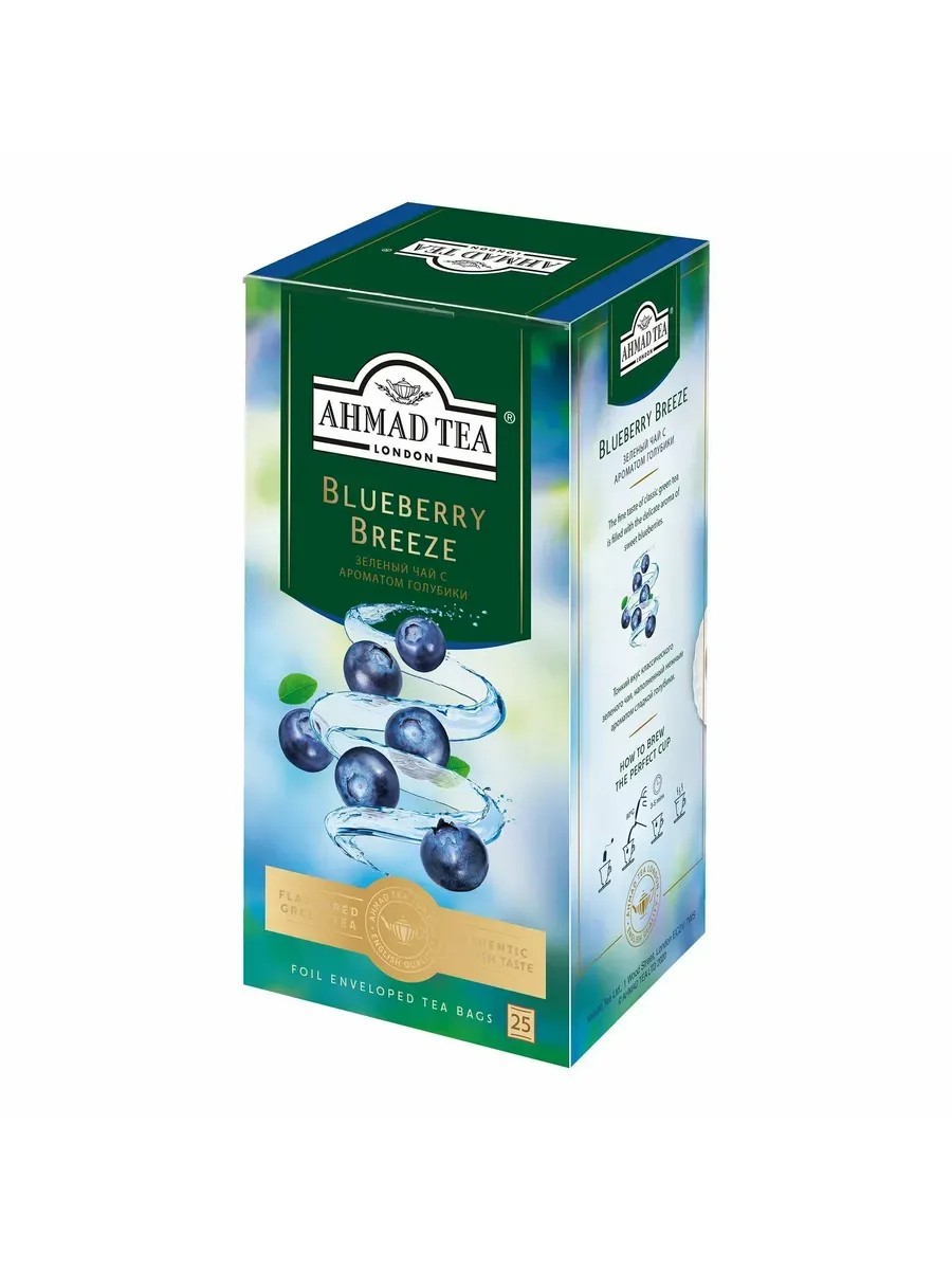 Ahmad Tea Чай зеленый Блуберри Бриз, 25 пак - тонкий вкус классического зеленого чая, наполненный нежным ароматом сладкой голубики. Blueberry Breeze – прохлада тенистого сада, свежесть росы и яркость солнца – настоящий вкус пробуждения.