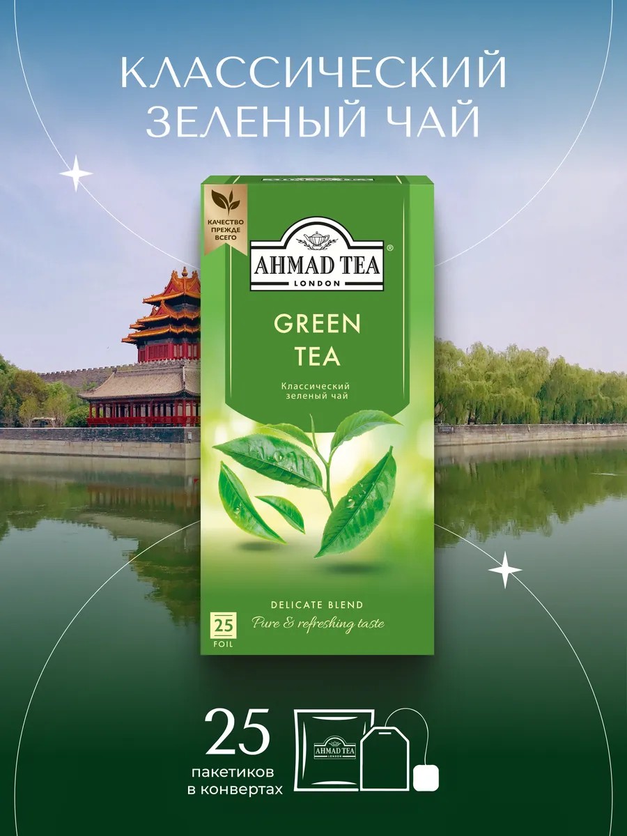 Ahmad Tea Green Tea, зеленый чай в пакетиках 25штук по 2г