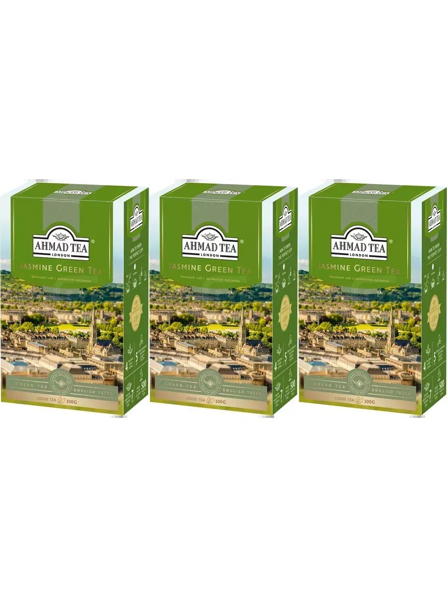 Ahmad Tea Чай зеленый с жасмином, листовой 100г, 3 упаковки.
