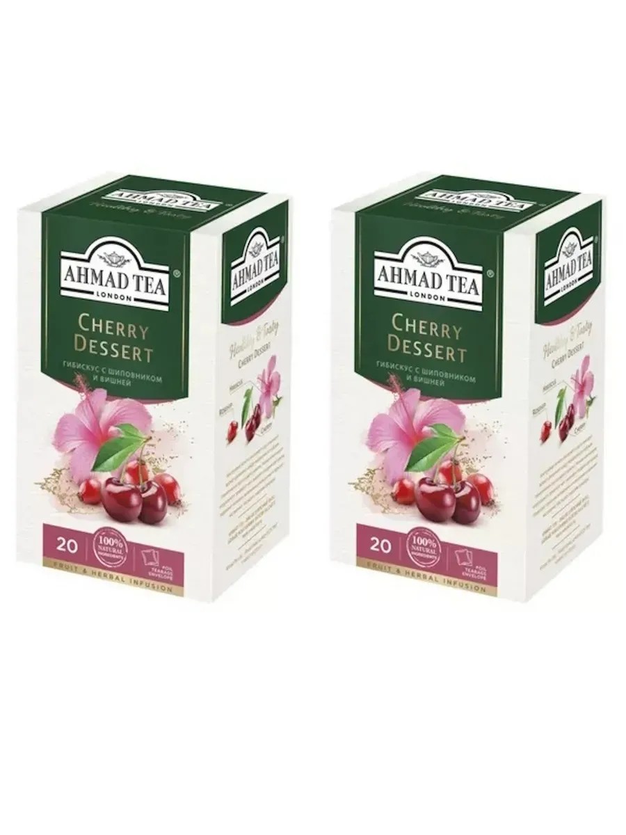 Ahmad tea, Чай травяной, Cherry dessert с вишней и шиповником. В комплекте 2 упаковки по 20 пакетиков. Это травяной чай с вишней и шиповником, со сладким вкусом вишни, шиповника, с легкой ноткой миндаля и кислинкой в послевкусии, светло-красным цветом настоя. Чай Cherry desser — это яркий букет вкусов лета, солнца и здоровья. Шиповник, называемый целебным апельсином Севера, обогащает организм витамином С и усиливает защитные качества иммунитета. Эта нежная композиция инфьюжен дает ароматный напиток с легкой кислинкой и вишневой сладостью.