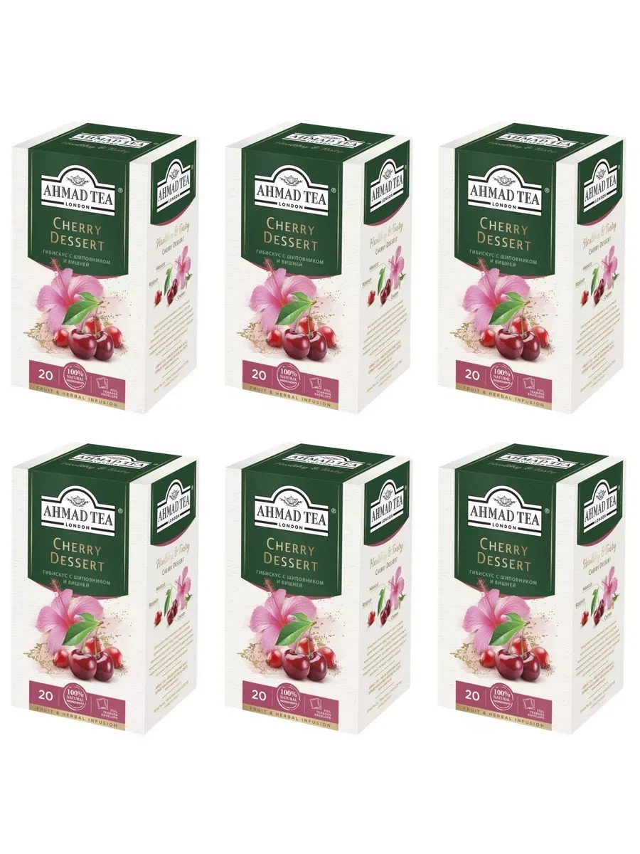 Ahmad Tea Чай травяной с вишней и шиповником 20 пакетиков, 6 упаковок.