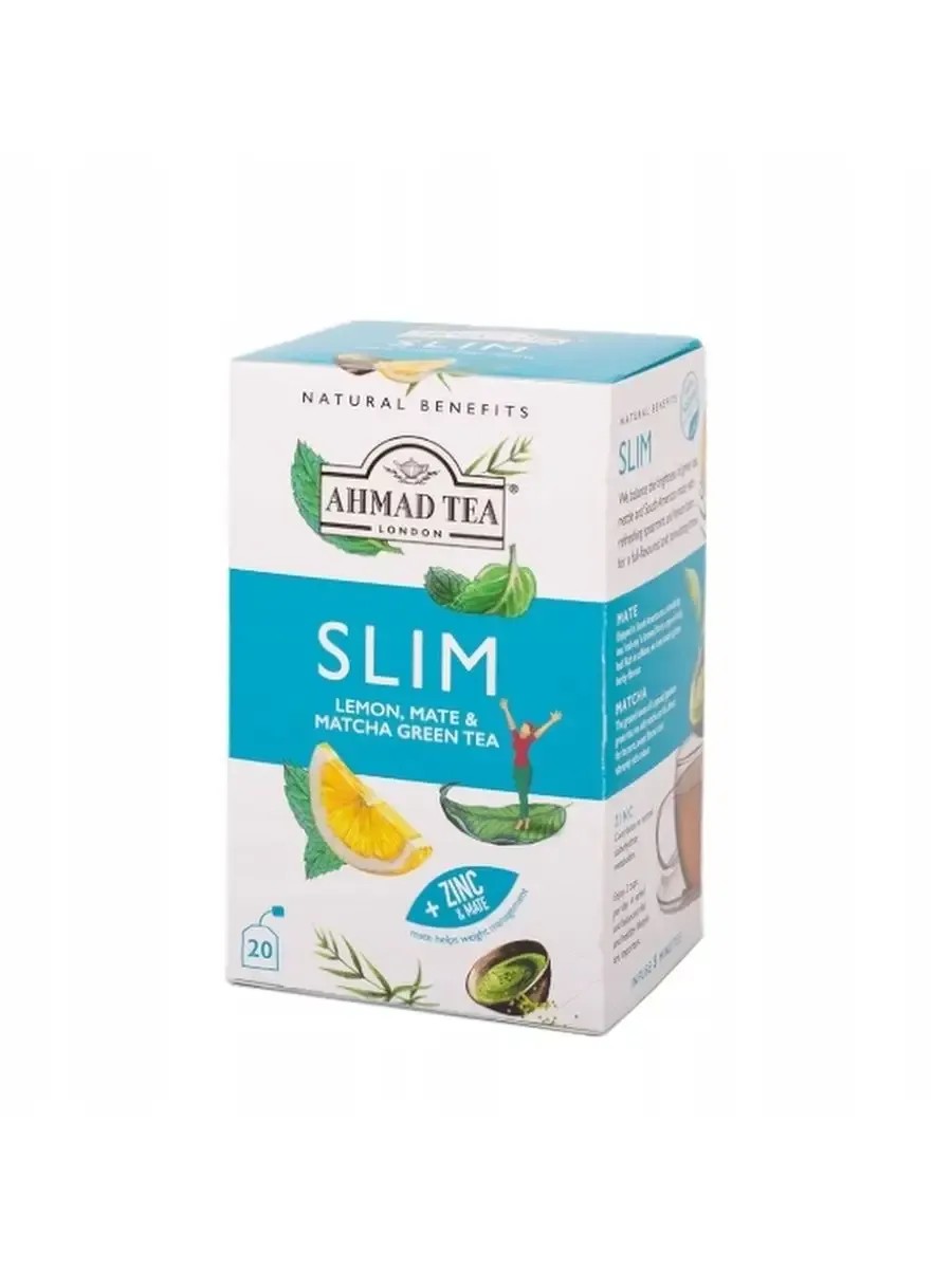 Ahmad Tea: Lemon, Mate, and Matcha Tea, 20 1.5g tea bags. One package included. This green tea has a balanced flavor of nettle, refreshing mint, and lemon balm, offering a full-bodied aroma and stimulating infusion. Yerba mate tea, made from holly leaves, is rich in caffeine and a tea-like flavor. Ground leaves of special Japanese green tea, matte, give the tea a sweet taste and rich color. Additionally, zinc, contained in the tea, promotes proper carbohydrate metabolism. Two cups per day are recommended as part of a varied and balanced diet and a healthy lifestyle.