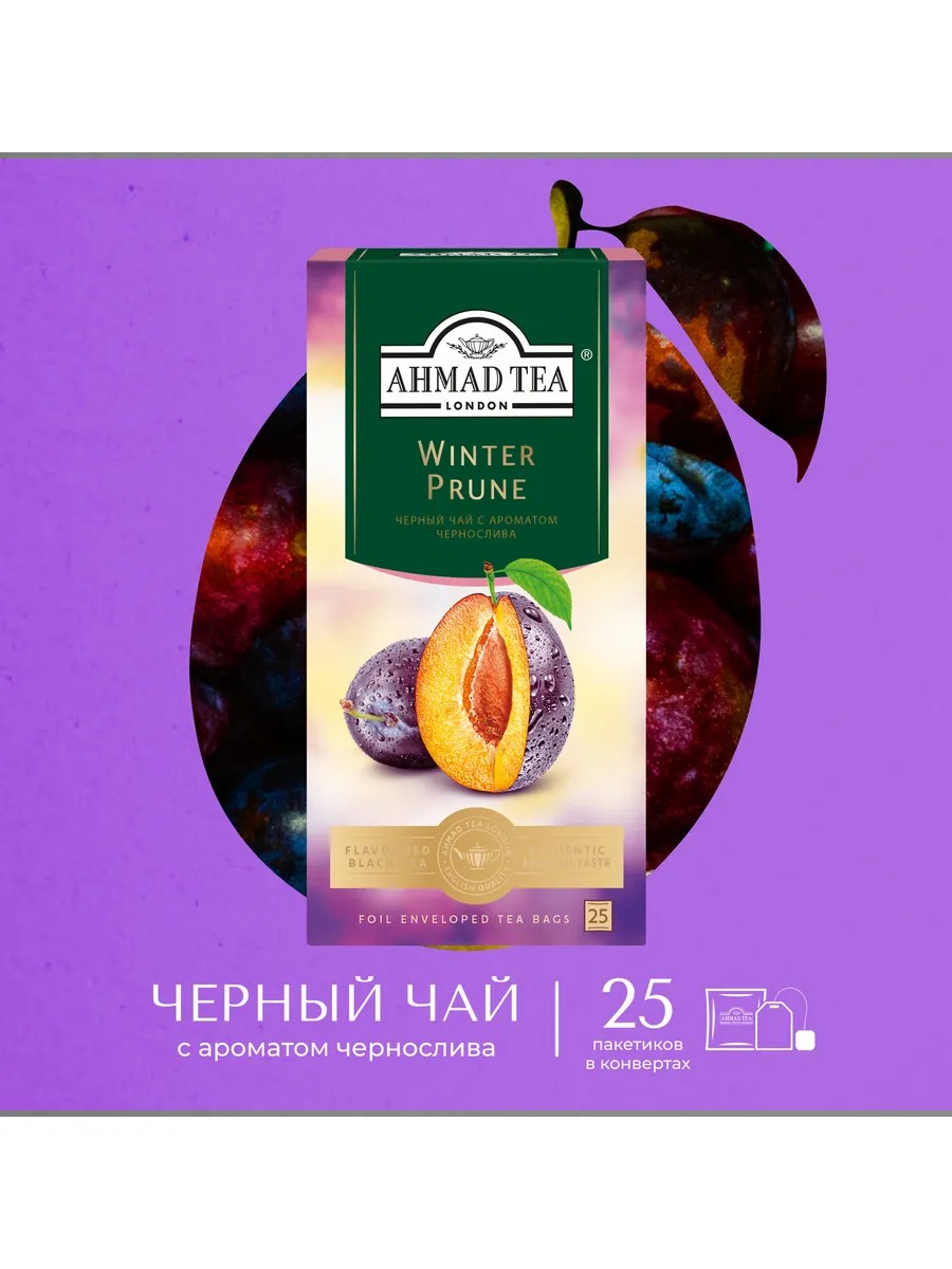 Ahmad Tea Winter Prune, черный чай в пакетиках, 25 шт по 1,5г