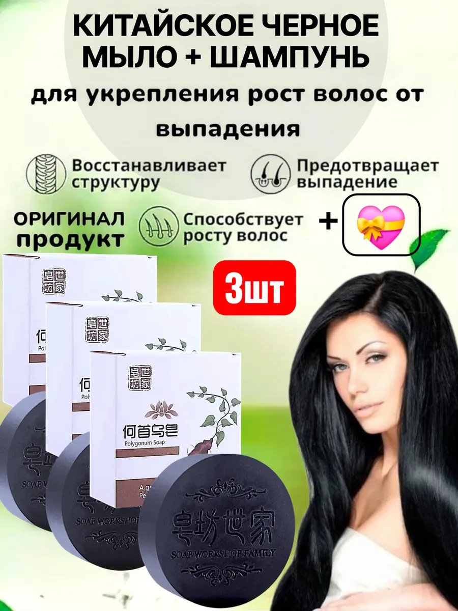 Корейское Черное мыло, укрепляющее волосы, стимулирующее рост, против выпадения волос, увлажняющее, очищающее, натуральные ингредиенты, безопасное использование. Тренд 2023!!! Твердый сухой eco шампунь без сульфатов и парабенов МЫLО - средство ухода за волосами. Внимание!!! Это китайский лечебный мыло. Дает результаты при длительном применении. Придает обьем мертвым волосом. Подходит для женщин, мужчин, детей, подростков, мальчиков, девочек. Укрепляющий, очищающий, профессиональный для восстановления поврежденных волос, придания объема. Увлажняющий безсульфатный шампунь мыло делает волосы здоровыми, гладкими. Для ежедневного применения на окрашенных, жирных у корней, сухих, тонких, вьющихся, кудрявых волос. Интенсивно восстанавливающий волосы подходит для глубокой очистки чувствительной кожи головы. Маленький расход, хватит на 2-3 месяца. Бессульфатный эко шампунь не содержит консервантов, красителей, кокоса. Может использоваться как детский шампунь, как средство для роста волос, против выпадения, для брюнеток и блондинок.Невероятное сочетание дикой природы и передовых технологий! Чудо Черное мыло Для волос - это идеальный уход за всем телом. Уникальная формула, основанная на 37 целебных травах, позволяет сохранить здоровье и красоту кожи и волос. Наше черное мыло содержит деготь и березовую чагу, которые прекрасно очищают кожу и дарят ей здоровый блеск. Вы можете использовать наше мыло как шампунь и гель для душа, и оно обязательно порадует вас своей мягкостью и бережным уходом за вашим телом. Нанесите мыло на влажные волосы и кожу тела, немного помассируйте и смойте водой.В составе нашего мыла только натуральные компоненты, такие как масла кедра, пихты, облепихи, можжевельника и многие другие, а также экстракты толокнянки, девясила, истода сибирского и сосновой живицы. Откройте для себя натуральный уход за вашим телом с Мылом для бани. Результат дадут от 3 до 9 месяцев