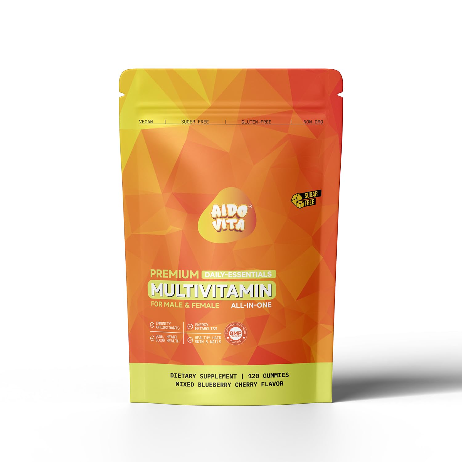 AIDO VITA Premium Multivitamin Gummies for Adults - Mixed Blueberry Cherry Flavor with Essential Vitamins A B C D E Biotin Zinc for Immune Energy & Hair Health 60 Day Supply(120 Count)