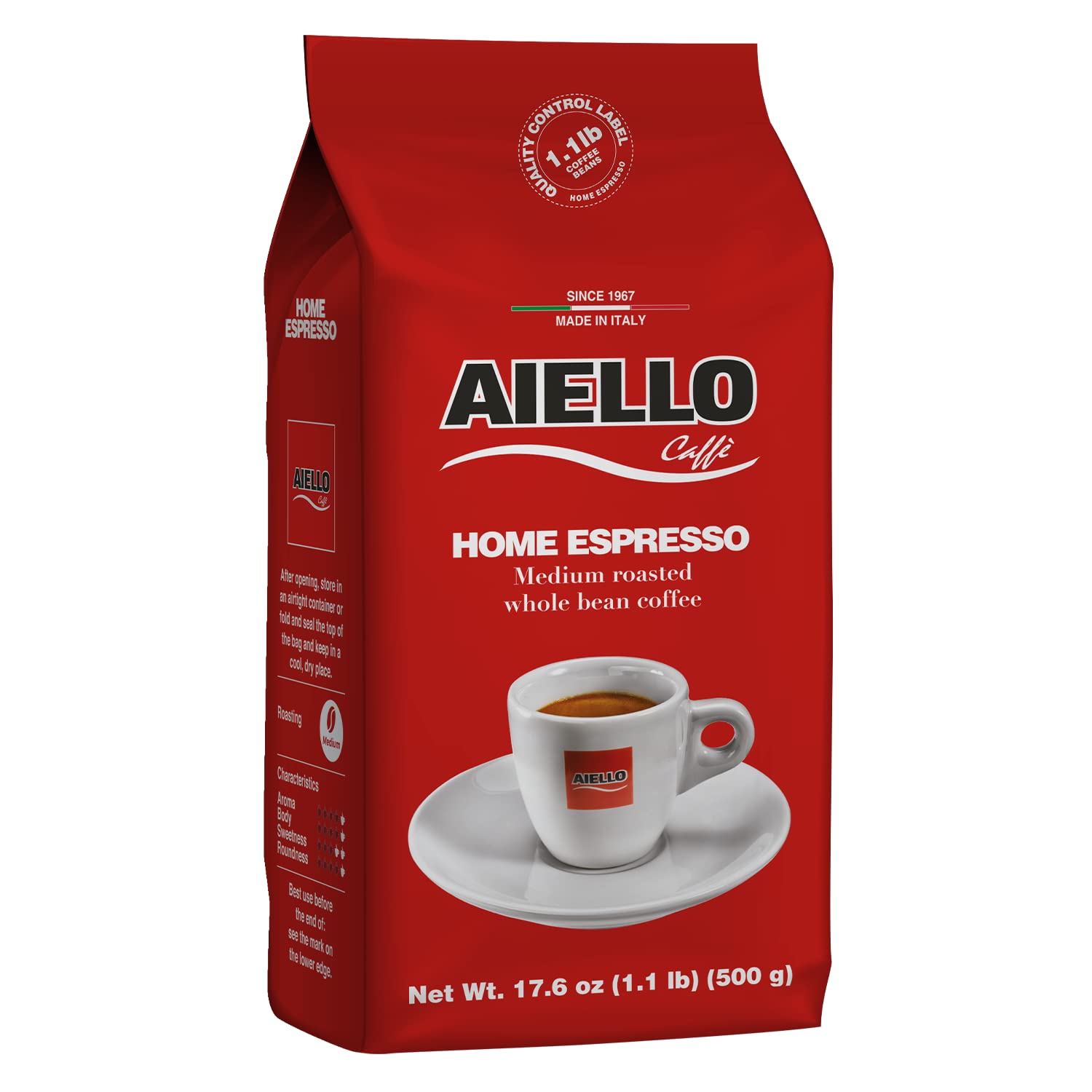CAFÉ AIELLO - HOME ESPRESSO - Mélange en grains 500 Gr - Mélange fort - Intensité 8 10 - Emballage simple