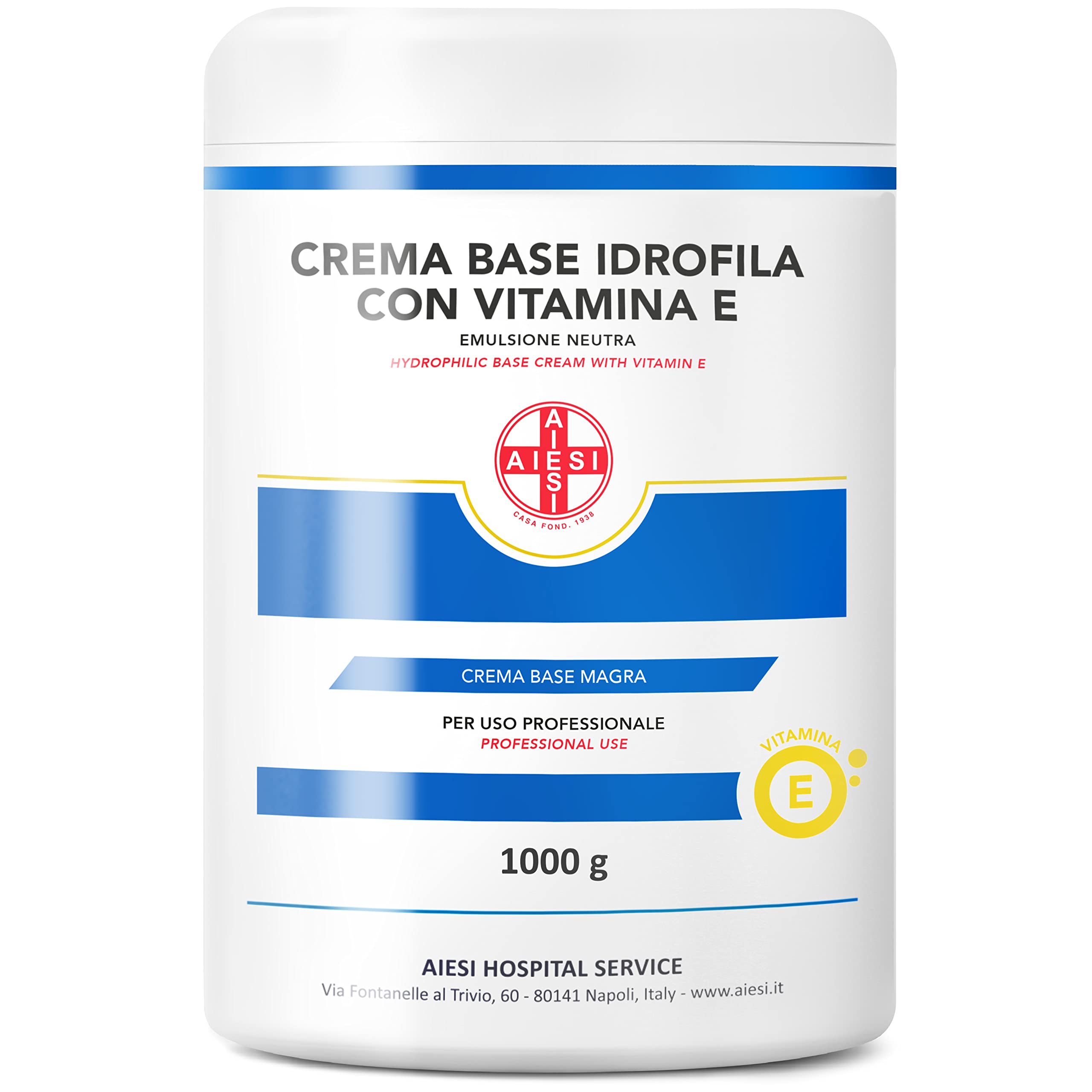 Hydrophilic (thin) base cream with vegetable oil and vitamin E is a white, soft and fluid neutral oil-in-water emulsion, composed of ingredients with emollient, moisturizing, restructuring and protective propertiesMade in Italy. Produced according to good Good Manufacturing Practice (GMP). Pleasant to apply and quickly absorbed, it leaves the skin soft and velvety, restoring well-being and natural balance to the treated areas. The product can be used neat as a carrier for active ingredients for the diffusion of these substances on the skin because, thanks to its structure, it is particularly suitable for the incorporation of water-soluble functional substances. Product commonly used in the pharmaceutical, cosmetic, and dermatological fields, intended for the treatment of dry and sensitized skin. Contains ingredients that help combat serious dry skin conditions such as xerosis. Its rich formulation has been studied to help restore the weakened skin barrier from the first application. The Hydrophilic Base Cream (Thin) with Vegetable Oil and Vitamin E is a white, soft, and fluid neutral oil-in-water emulsion, composed of ingredients with emollient, moisturizing, restructuring, and protective properties. Contains vitamin E, an ingredient with antioxidant properties, which helps slow down and counteract oxidative stress on the skin caused by free radicals. La crème de base hydrophile (maigre) à l'huile végétale et à la vitamine E est une émulsion huile-dans-eau neutre blanche, douce et fluide, composée d'ingrédients aux propriétés émollientes, hydratantes, restructurantes et protectricesMade in Italy. Produit selon les bonnes Good Manufacturing Practice (GMP). Agréable à appliquer et rapidement absorbée, elle laisse la peau douce et veloutée, redonnant bien-être et équilibre naturel aux zones traitées. Le produit peut être utilisé pur comme support de principes actifs pour la diffusion de ces substances sur la peau car, grâce à sa structure, il est particulièrement adapté à l'incorporation de substances fonctionnelles hydrosolubles. Produit couramment utilisé dans les domaines pharmaceutique, cosmétique et dermatologique, destiné au traitement des peaux sèches et sensibilisées. Contient des ingrédients qui aident à lutter contre les affections cutanées sèches graves telles que la xérose. Sa formulation riche a été étudiée pour aider à restaurer la barrière cutanée fragilisée dès la première application. La Crème de base hydrophile (maigre) à l'huile végétale et à la vitamine E est une émulsion huile-dans-eau neutre blanche, douce et fluide, composée d'ingrédients aux propriétés émollientes, hydratantes, restructurantes et protectrices. Contient de la vitamine E, un ingrédient aux propriétés antioxydantes, qui aide à ralentir et à contrecarrer le stress oxydatif de la peau causé par les radicaux libres.