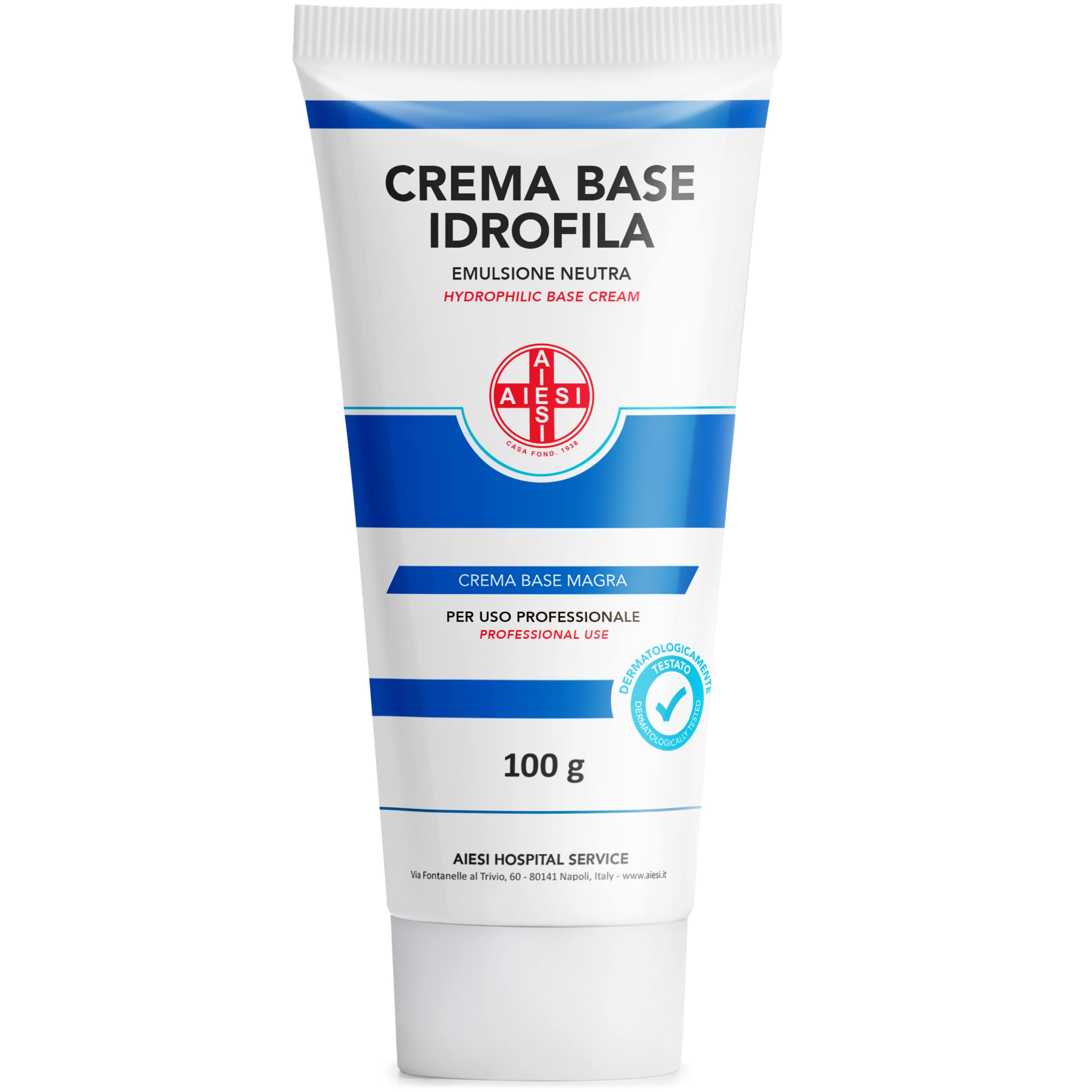 The Hydrophilic base cream (skimmed) is a neutral oil-in-water emulsion with a white, soft and flowing color, made with ingredients with restructuring, softening, moisturizing and protective propertiesMade in Italy. Produced according to Good Manufacturing Practice (GMP). It can be used as a carrier of active ingredients for the distribution of these substances on the skin, as its structure makes it particularly suitable for absorbing water-soluble functional substances. Product widely used in pharmaceutical, cosmetic and dermatological fields, ideal for the treatment of dry and sensitive skin. Formulated with components able to counteract severe dry skin conditions such as xerosis, the rich formulation is designed to help restore the weakened skin barrier from the first application. The Hydrophilic Base Cream (skimmed) is a neutral oil-in-water emulsion with a white, soft and flowing color, made with ingredients with restructuring, softening, moisturizing and protective properties. It can be used pure or as a carrier for functional fabrics. Pleasant to apply and quickly absorbed, it leaves the skin soft and velvety. The treated areas thus find their well-being and their natural balance.AIESI Hydrofiele basiscrème pure magere neutrale emulsie (Tube 100 g), Ideaal voor farmaceutisch, cosmetisch en dermatologisch gebruik, Made in Italy De Hydrofiele basiscrème (magere) is een neutrale olie-in-water-emulsie met een witte, zachte en vloeiende kleur, gemaakt met ingrediënten met herstructurerende, verzachtende, hydraterende en beschermende eigenschappenMade in Italy. Geproduceerd volgens Good Manufacturing Practice (GMP). Het kan worden gebruikt als drager van actieve ingrediënten voor de verspreiding van deze stoffen op de huid, aangezien het dankzij zijn structuur bijzonder geschikt is voor het opnemen van in water oplosbare functionele stoffen. Product dat veel wordt gebruikt op farmaceutisch, cosmetisch en dermatologisch gebied, ideaal voor de behandeling van droge en gevoelige huid. Geformuleerd met componenten die in staat zijn om ernstige droge huidaandoeningen zoals xerosis tegen te gaan, is de rijke formulering ontworpen om de verzwakte huidbarrière vanaf de eerste toepassing te helpen herstellen. De Hydrofiele basiscrème (magere) is een neutrale olie-in-water-emulsie met een witte, zachte en vloeiende kleur, gemaakt met ingrediënten met herstructurerende, verzachtende, hydraterende en beschermende eigenschappen. Het kan puur worden gebruikt of als drager voor functionele stoffen. Aangenaam om aan te brengen en snel opgenomen, maakt het de huid zacht en fluweelzacht. De behandelde zones vinden zo hun welzijn en hun natuurlijke balans.