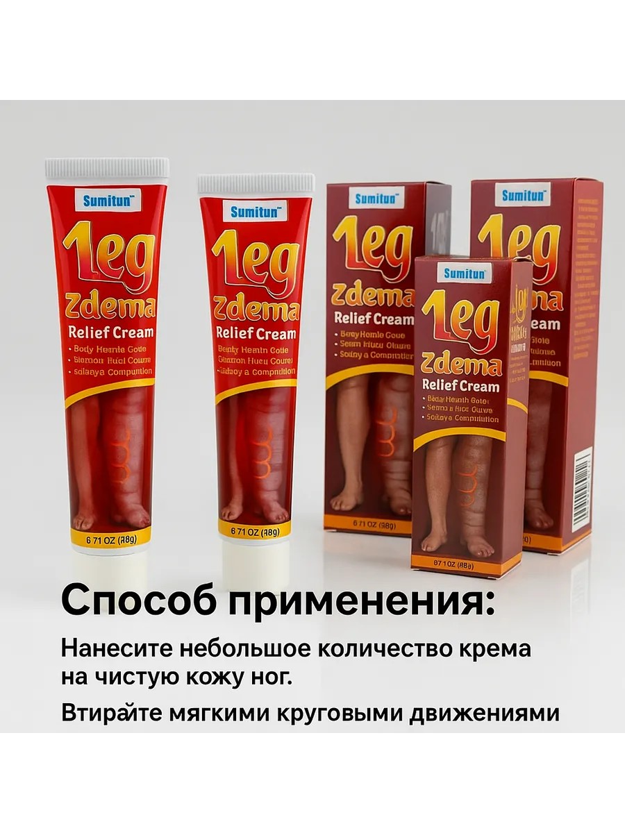 Крем от отеков ног Sumifun Leg Edema Relief Cream — эффективное средство для снятия отечности и тяжести в ногах. Обеспечивает активную поддержку при варикозе, усталости, задержке жидкости и отеках нижних конечностей. Идеально подходит для ухода за ногами после долгого дня на ногах, активных тренировок или при сидячей работе.