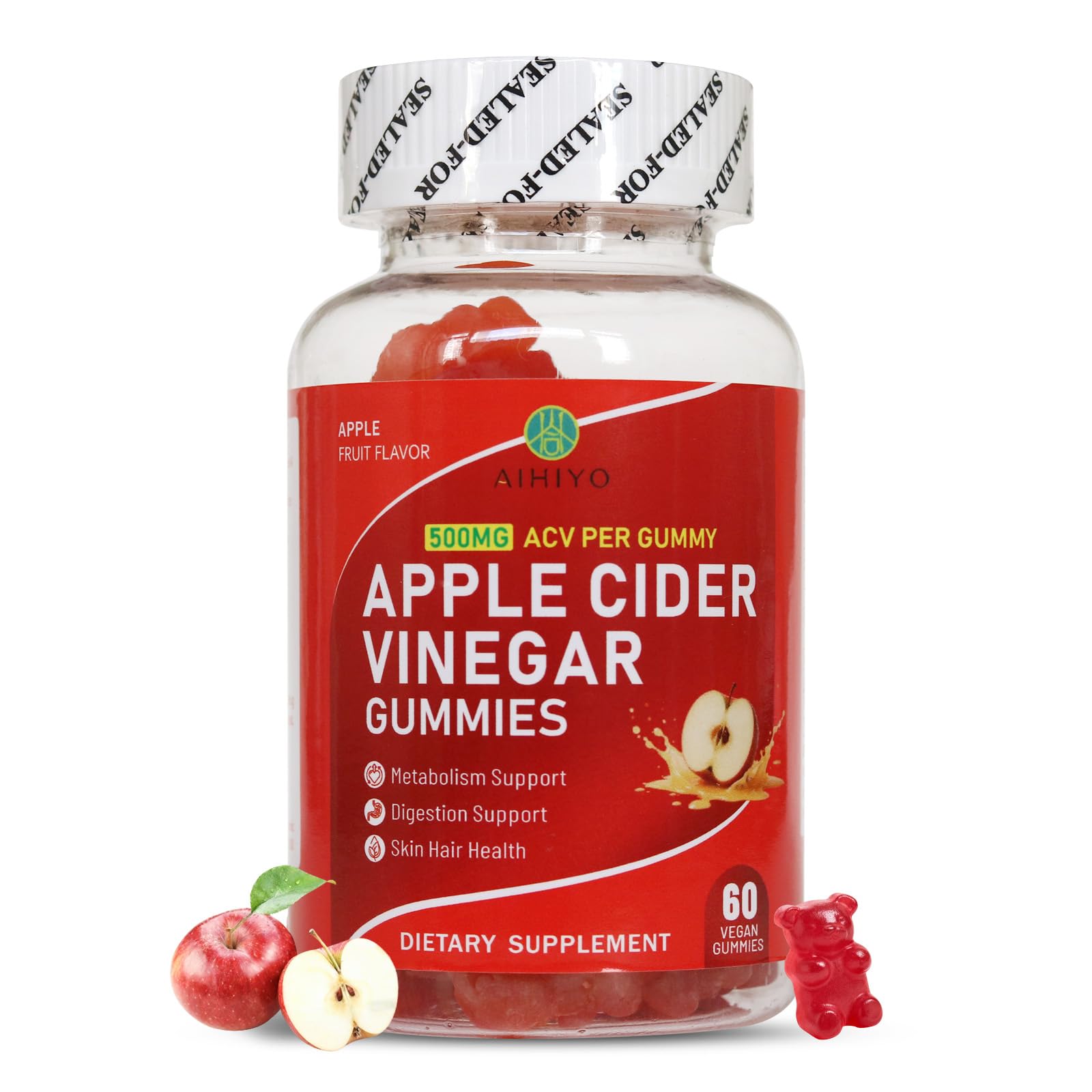 CONVENIENT WELLNESS SUPPORT - AIHIYO ACV gumies is vegan, organic, Non-GMO, Gluten Free Gelatin Free! Each bottle of our apple cider vinegar gummies organic contains 60 delicious gummies (30 day supply) that are good for you and your daily routine!. NATURAL FORMULATION - Crafted with care, you can feel confident in knowing our ingredients are premium, sourced from a cGMP facility with third party testing, ensuring you get a potent yet natural formula. APPLE FLAVORED GUMMY - Our premium quality apple cider vinegar gummy is made from fermented apple - and is naturally flavored with apples, our organic ACV gumies make your new daily routine easy and delicious. DIGESTIVE SUPPORT - AIHIYO organic apple cider vinegar gummies are standardized to 5 acetic acid, the acidic nature of apple cider vinegar may help raise stomach acidity to aid in healthy digestion and gut function, avoiding unnecessary gas!. CONVENIENT ALTERNATIVE - Enjoy the digestive benefits of apple cider vinegar in a convenient gummy form, perfect for those who dislike the taste or hassle of traditional liquid apple cider vinegar or ACV pills.