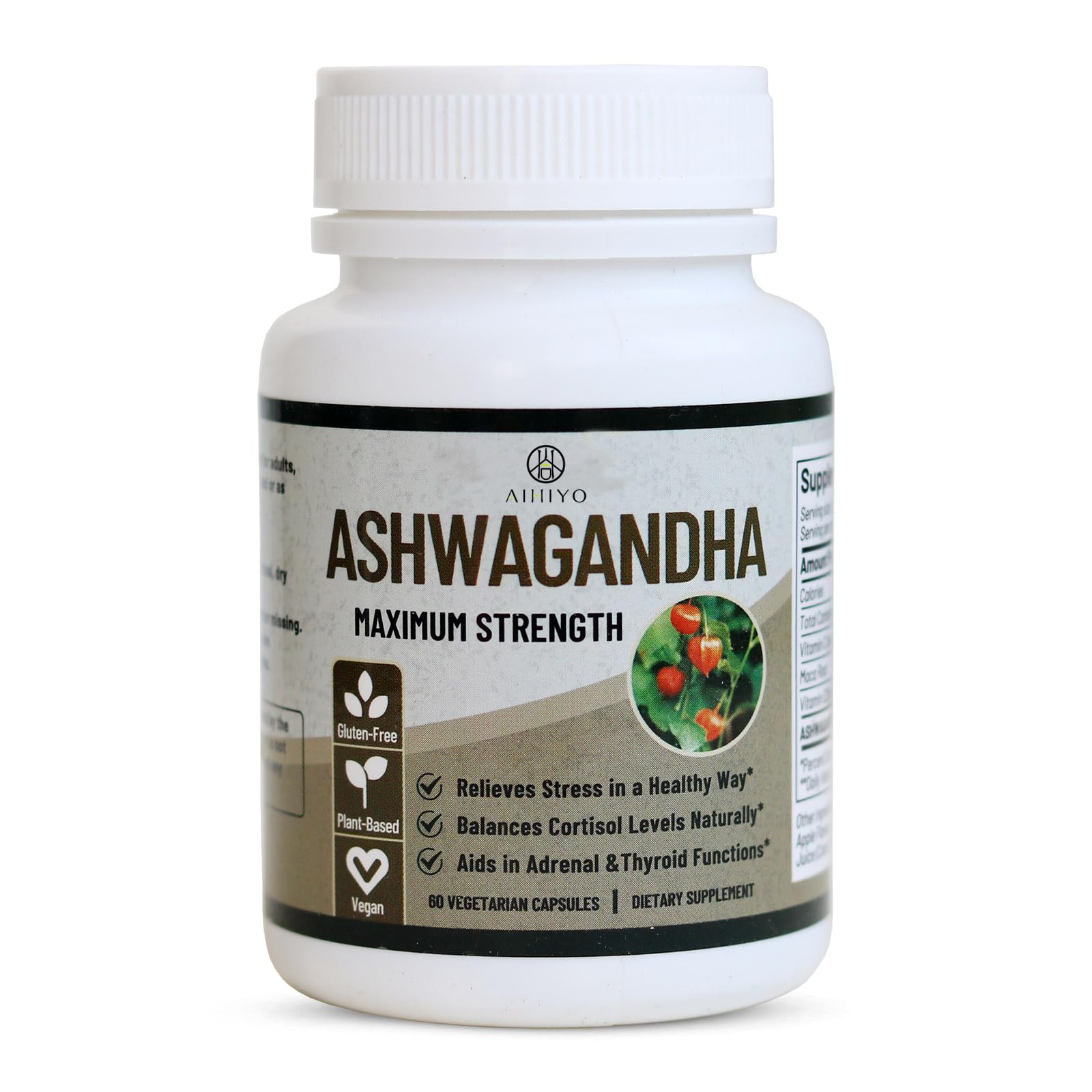 Product name: Ashwagandha capsule Packing specification: 60 capsules bottle Shelf life: 36 months Storage method: Keep the lid closed and store in a cool, dry placeQUALITY CONTROL - AIHIYO was founded in 1996, is a professional production of health tea, dietary nutrition, health food, special medical food, medical equipment and other modern high-tech enterprise group. GENTLE AND SAFE INGREADIENTS - Vegan-friendly and GMP-certified, this formula contains no artificial additives, preservatives, gluten, soy, or dairy, it only takes 2 capsules a day to help your body achieve balance and lay a comfortable foundation for overall health. ANTIOXIDANT AND IMMUNE SUPPORT - Boosted with essential nutrients including Vitamins C D2 to support immune health and antioxidant, improve absorption efficiency, and work synergistically with other herbal ingredients for comprehensive health benefits. MORE POTENT BENEFITS - Each Ashwagandha pill bear delivers a daily need for nutrition for optimal performance, These nutrients can help improve your mood, improve sleep, promote calm, and exercise recovery. PREMIUM ASHWAGANDHA CAPSULE - AIHIYO Ashwagandha capsule are a delicious and convenient way to support your self-care routine, we advanced our formula with pure Ashwagandha Extract, MACA root, Vitamin D2 and Vitamin C, for extra benefits on your focus, memory, sleep, and energy.