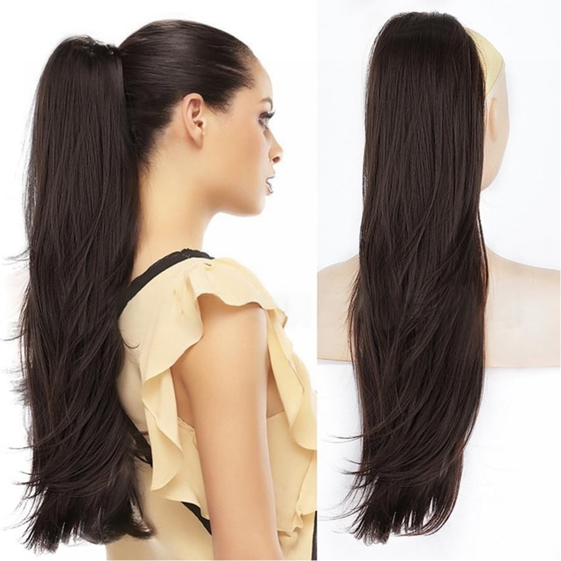 aikaa Ponytail Extensions 26 inch Long Drawstring Wavy Clip in Ponytail Hair Extensions Layered Synthetic Hairpiece for Women 26 Inch 26 Inch 4# Dark Brown