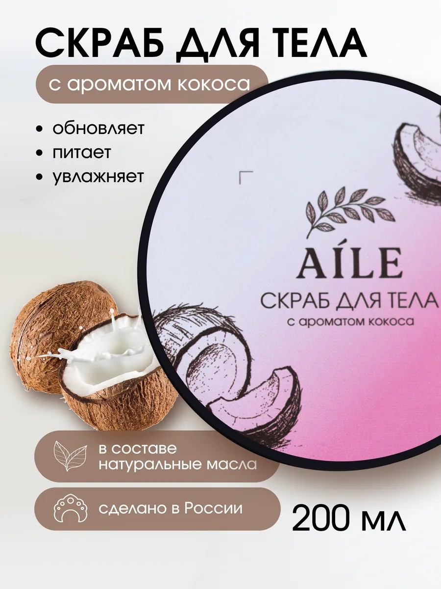 Увлажняющий скраб для тела AILE с ароматом кокоса — отличный вариант подарка на 8 марта, День рождения, Новый год, 14 февраля. Подойдёт для подруги, жены, сестры, мамы, коллеги или себя любимой!
