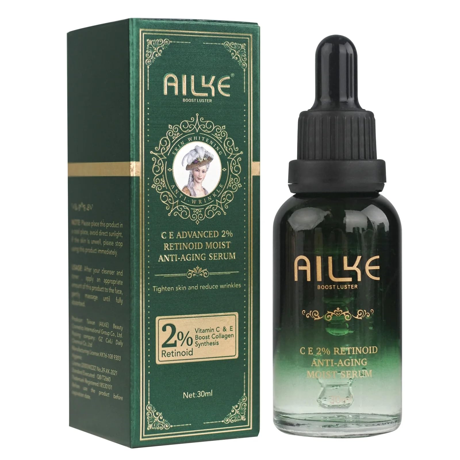Unlock radiant beauty with AILKE'S Advanced 2 Retinol Moist Anti-Aging Serum. This luxurious formula harnesses the power of Vitamin C and E to boost collagen synthesis and remove dark spots for a more youthful complexion. The rich, nourishing blend lifts and firms skin, diminishing the appearance of fine lines and wrinkles. Experience the transformative effects of this advanced lifting and brightening serum that delivers visible results.