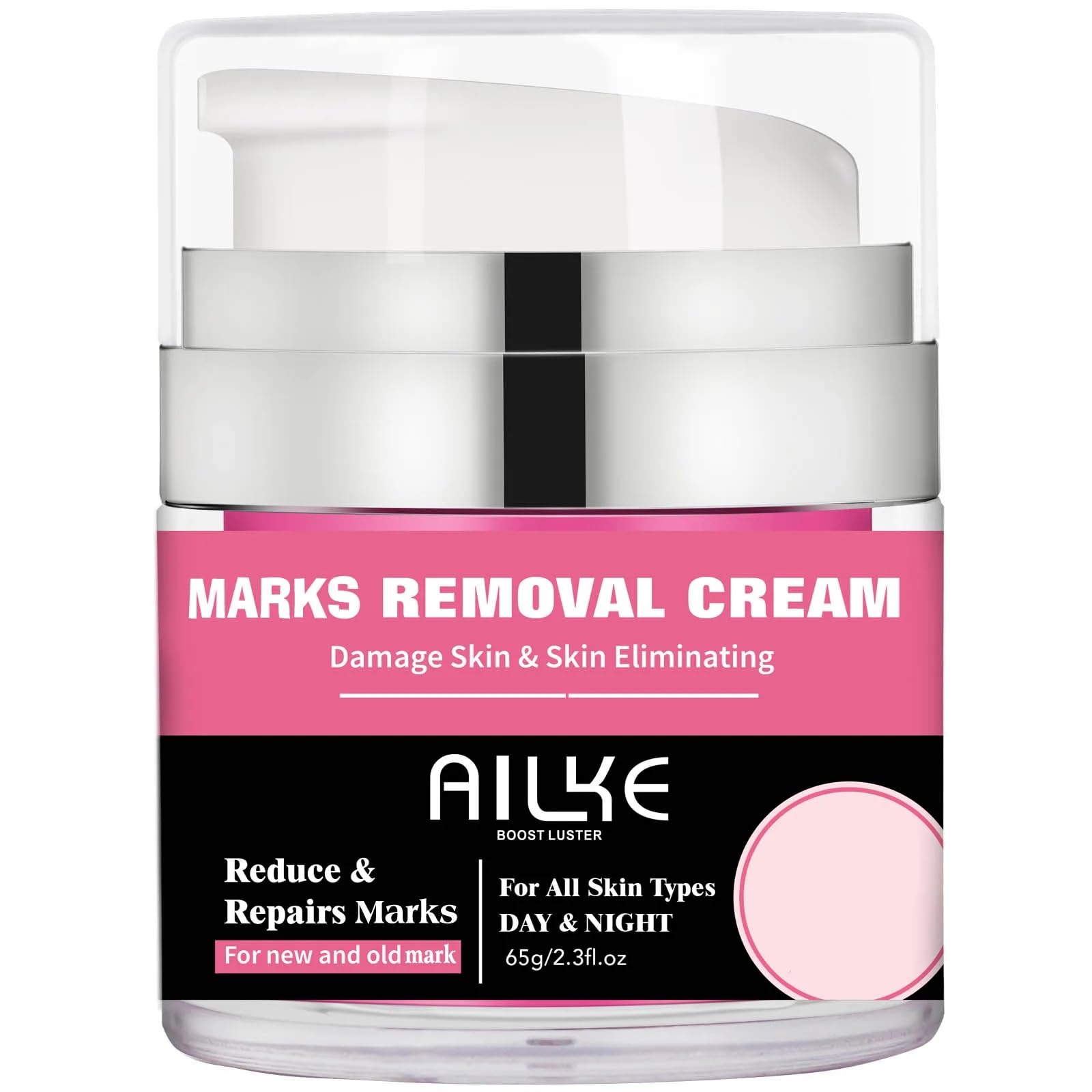 DESCRIPTION DU PRODUIT DESCRIPTION DU PRODUIT AILKE'S Marks Removal Cream is a powerful solution for reducing and repairing both new and old marks on the skin. Suitable for all skin types, this cream can be used day and night to eliminate damage and promote a smooth, even complexion. With a lightweight, non-greasy formula, it absorbs quickly into the skin, targeting discolourations and blemishes. The 65 ml jar makes it convenient for regular use in your skincare routine. Experience the rejuvenating effects of this effective marks removal cream from AILKE. AVERTISSEMENT DE SÉCURITÉ This product is for external use only and all skin types are different, so for best results, please follow the instructions below. First use-test on a small part of the skin. If you have an allergic reaction allergy, please stop using it. If any reaction occurs, stop using it immediately. Do not use if you are sensitive to any ingredients. Avoid contact with eyes. If contact occurs, rinse thoroughly with water. This product is not intended to diagnose, alleviate, treat, cure or prevent any diseaseMulti-Purpose: Versatile cream can be used on the face, body, and other areas with marks or skin damage. Day and Night Use: Suitable for use both during the day and at night to ensure continuous skin repair. Potent Formula: Formulated to eliminate skin discolouration and blemishes, boosting skin's natural lustre. Nourishing Ingredients: Enriched with vitamins and botanicals, the formula nourishes and hydrates the skin while diminishing the appearance of acne marks. Comprehensive Solution: This marks removal cream helps reduce and repair new and old marks on damaged skin for all skin types.AILKE Acne Scar Removal Cream, Stretch Mark Remove Cream, Repair Damage Skin, Clean Skin with Herbal Extracts, Hydrolyzed Collagen, 65 ml (Pack of 1)DESCRIPTION DU PRODUIT DESCRIPTION DU PRODUIT AILKE'S Marks Removal Cream is a powerful solution for reducing and repairing both new and old marks on the skin. Suitable for all skin types, this cream can be used day and night to eliminate damage and promote a smooth, even complexion. With a lightweight, non-greasy formula, it absorbs quickly into the skin, targeting discolourations and blemishes. The 65 ml jar makes it convenient for regular use in your skincare routine. Experience the rejuvenating effects of this effective marks removal cream from AILKE. AVERTISSEMENT DE SÉCURITÉ This product is for external use only and all skin types are different, so for best results, please follow the instructions below. First use-test on a small part of the skin. If you have an allergic reaction allergy, please stop using it. If any reaction occurs, stop using it immediately. Do not use if you are sensitive to any ingredients. Avoid contact with eyes. If contact occurs, rinse thoroughly with water. This product is not intended to diagnose, alleviate, treat, cure or prevent any diseaseMulti-Purpose: Versatile cream can be used on the face, body, and other areas with marks or skin damage. Day and Night Use: Suitable for use both during the day and at night to ensure continuous skin repair. Potent Formula: Formulated to eliminate skin discolouration and blemishes, boosting skin's natural lustre. Nourishing Ingredients: Enriched with vitamins and botanicals, the formula nourishes and hydrates the skin while diminishing the appearance of acne marks. Comprehensive Solution: This marks removal cream helps reduce and repair new and old marks on damaged skin for all skin types.