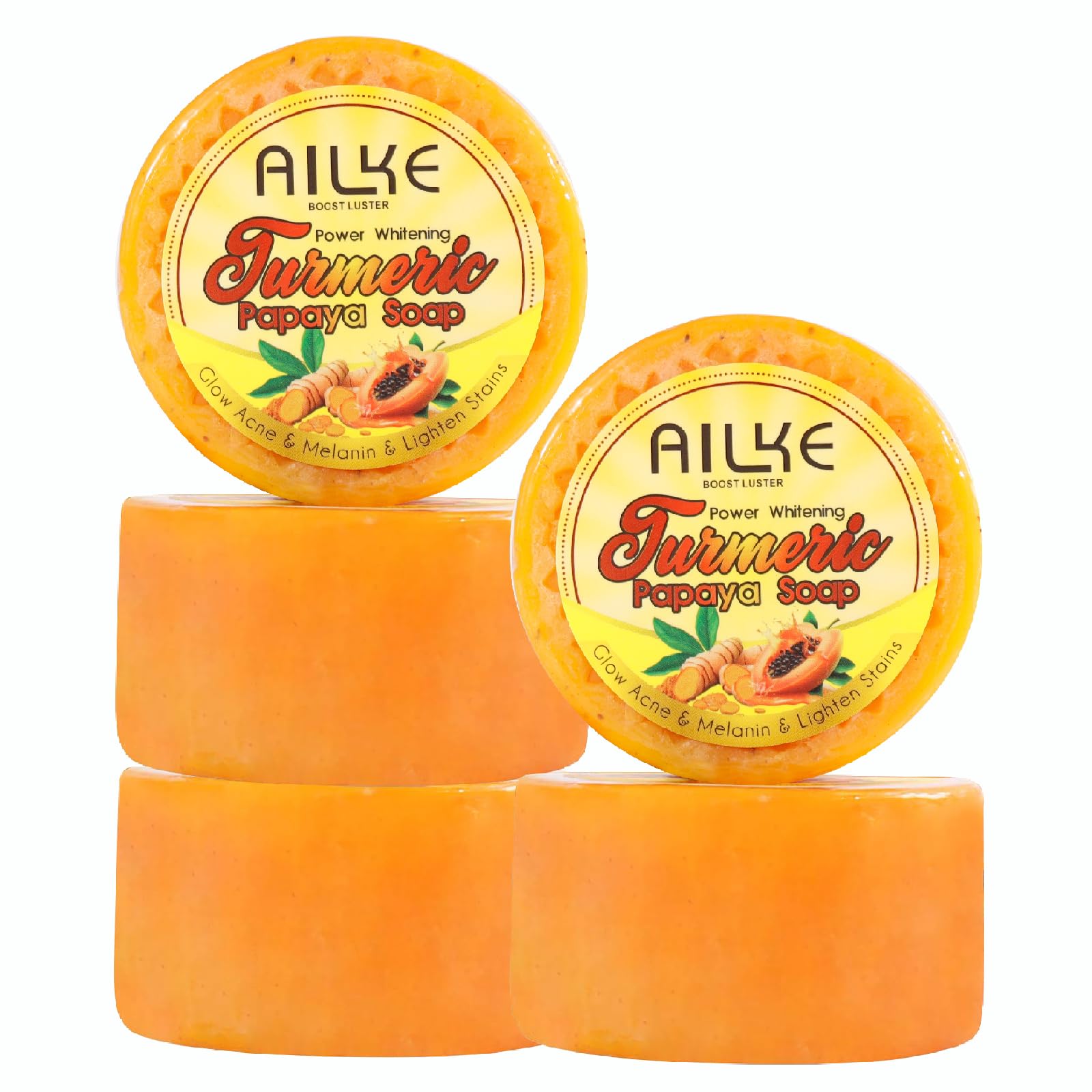 Discover AILKE Power Whitening Turmeric Papaya Soap Bar, a gentle yet effective skincare solution combining natural ingredients for radiant skin. This 200g soap bar harnesses the power of turmeric's antioxidant properties and papaya's natural brightening abilities, along with carrot extract for enhanced hydration. The rich, creamy lather is easy to rinse and leaves skin feeling supple and moisturised. Perfect for face and body, this soap helps fade dark spots, combat acne, and unclog pores while deeply nourishing your skin. The formula includes premium ingredients like 24K Gold, Glutathione, Vitamin C, and Trehalose that work in harmony to promote a more even skin tone. Suitable for all skin types, this non-irritating soap creates a gentle cleansing experience while targeting multiple skin concerns. VEILIGHEIDSWAARSCHUWING For external use only. Avoid direct contact with eyes. Discontinue use if irritation or redness occurs. Keep out of reach of childrenPRODUCT SPECIFICATIONS: 200g soap bar, suitable for all skin types and daily use. ANTIOXIDANT PROTECTION: Contains natural antioxidants that help protect skin whilst improving complexion and overall skin condition. GENTLE FORMULA: Non-irritating soap bar suitable for face and body use, creates rich lather that rinses off easily leaving skin soft and supple. SKIN BENEFITS: Helps fade dark spots, reduces acne, unclogs pores, and evens skin tone whilst providing deep moisturisation. NATURAL INGREDIENTS: Features powerful combination of Turmeric, Papaya, and Carrot extracts for gentle yet effective skin brightening and nourishment.AILKE Power Whitening Turmeric Papaya Soap Bar, Gentle Clean Skin, Reduce Dark Spots, Acne, Unclogs Pores, for Face, Body and All Skin Types, 200g (Pack of 5) Discover AILKE Power Whitening Turmeric Papaya Soap Bar, a gentle yet effective skincare solution combining natural ingredients for radiant skin. This 200g soap bar harnesses the power of turmeric's antioxidant properties and papaya's natural brightening abilities, along with carrot extract for enhanced hydration. The rich, creamy lather is easy to rinse and leaves skin feeling supple and moisturised. Perfect for face and body, this soap helps fade dark spots, combat acne, and unclog pores while deeply nourishing your skin. The formula includes premium ingredients like 24K Gold, Glutathione, Vitamin C, and Trehalose that work in harmony to promote a more even skin tone. Suitable for all skin types, this non-irritating soap creates a gentle cleansing experience while targeting multiple skin concerns. VEILIGHEIDSWAARSCHUWING For external use only. Avoid direct contact with eyes. Discontinue use if irritation or redness occurs. Keep out of reach of childrenPRODUCT SPECIFICATIONS: 200g soap bar, suitable for all skin types and daily use. ANTIOXIDANT PROTECTION: Contains natural antioxidants that help protect skin whilst improving complexion and overall skin condition. GENTLE FORMULA: Non-irritating soap bar suitable for face and body use, creates rich lather that rinses off easily leaving skin soft and supple. SKIN BENEFITS: Helps fade dark spots, reduces acne, unclogs pores, and evens skin tone whilst providing deep moisturisation. NATURAL INGREDIENTS: Features powerful combination of Turmeric, Papaya, and Carrot extracts for gentle yet effective skin brightening and nourishment.