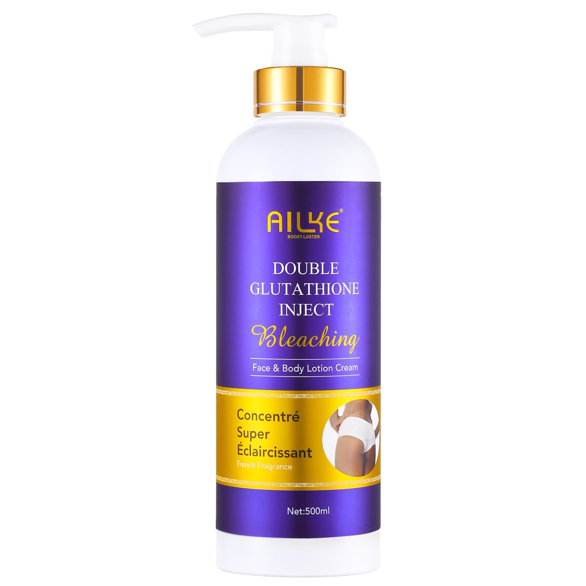 1. Melanin precipitation is a major cause of skin blemishes. Glutathione is known for its powerful antioxidant properties. It can inhibit tyrosinase synthesis, rapidly eliminate melanin, visibly improve a yellowish complexion, and provide a radiant, brightening effect. 2. Hyaluronic acid is a natural skin humectant that improves skin hydration, actively retains moisture, delays skin aging, and moisturizes dry skin to keep it smooth and soft day after day. 3. Tip: Remember to use a good SPF sunscreen during the day to protect your new glow for best results. INGREDIENTS Glutation, Hyaluronic Acid, Shea Butter, Papaya Extract, Kojic Acid, Collagen, Niacinamide, Vitamin C, Sodium Stearate, Sodium Laurate, Sodium Myristat, Glycerin, Tea Tree Oil Extract, Coconut Oil DIRECTIONS Apply to the body after showering and massage gently until fully absorbed. Use daily and follow with sunscreen for optimal results. SAFETY WARNING This product is for external use only, and all skin types are different. For best results, follow the instructions below. First, test on a small area of skin. If an allergic reaction occurs, discontinue use. Do not use if you are sensitive to any of the ingredients. Avoid contact with eyes. Keep out of reach of children. See more5. Tested and Approved: For the past 30 years, we have insisted on producing high-quality skincare products with high-quality formulas. AILKE BOOST LUSTER is a brand recommended by private healthcare professionals. 4. Natural: Formulated without parabens, alcohol, dyes, sulfates, or phthalates. 3. Gentle and Non-Irritating: Soft texture, easily absorbed, leaves no sticky residue, does not clog pores, and does not cause acne. 2. Instant Hydration: With hyaluronic acid, which absorbs moisture and locks in water molecules, hydrates dry skin, giving you healthy, clean, moisturized, soft, and smooth skin. 1. Brightening Body Lotion: With glutathione, which can brighten skin tone and radiance by reducing the activity of tyrosinase in skin cells and inhibiting melanin production. Suitable for the body.AILKE BOOST LUSTER Crème pour le corps éclairant avec glutathion Crème corporelle intensément hydratante nourrissante lisse non grasse pour tous les types de peau 500 ml lotion pour le corpsDESCRIPTION DU PRODUIT DESCRIPTION DU PRODUIT 1. La précipitation de mélanine est une cause importante de taches cutanées. Le glutathion est réputé pour sa puissante fonction antioxydante. Peut inhiber la synthèse de la tyrosinase, éliminer rapidement la mélanine, améliorer visiblement un teint jaunâtre et apporter des effets radieux et éclaircissants. 2. L'acide hyaluronique est un humectant naturel pour la peau qui améliore l'hydratation de la peau, retient activement l'hydratation, retarde le vieillissement cutané et hydrate la peau sèche pour la garder lisse et douce jour après jour 3. Conseils : rappelez, pendant la journée d'utiliser un bon SPF pour protéger votre nouvelle lueur trouvée afin que vous puissiez obtenir de meilleurs résultats. INGRÉDIENTS Glutation, acide hyaluronique, beurre de karité, extrait de papaye, acide kojique, collagène, niacinamide, vitamine C, stéarate de sodium, laurate de sodium, myristat de sodium, glycérine, extrait d'huile de melaleuque, huile de noix de coco MODE D'EMPLOI Appliquer sur la peau du corps après la douche, masser délicatement jusqu'à absorption complète. Utiliser quotidiennement et suivre avec une crème solaire pour des résultats optimaux. AVERTISSEMENT DE SÉCURITÉ Ce produit est uniquement pour un usage extérieur et tous les types de peau sont différents. Pour obtenir les meilleurs résultats, suivez les instructions ci-dessous. Premier test d'application sur une petite zone de la peau. En cas de réaction allergique allergie, arrêtez l'utilisation. En cas de réaction, arrêtez immédiatement l'utilisation. Ne pas utiliser si vous êtes sensible à l'un des ingrédients. Évitez tout contact avec les yeux, tenir hors de portée des enfants Voir plus5. Testé et approuvé : au cours des 30 dernières années, nous avons insisté dans la production de produits de soins de la peau de haute qualité avec des formules de haute qualité, AILKE BOOST LUSTER - une marque recommandée par des professionnels de santé privés. 4. Naturel : Formulé sans parabène, alcool, colorants, sulfates, phtalates. 3. Doux et non irritant : texture douce, facile à absorber, ne laisse pas la peau collante, n'obstrue pas les pores et ne provoque pas d'acné. 2. Hydratation instantanée : avec de l'acide hyaluronique, qui absorbe l'humidité et bloque les molécules d'eau, hydrate la peau sèche, vous donnant une peau saine, propre, hydratée, douce et lisse. 1. Lotion pour le corps éclaircissante : avec glutation, qui peut éclairer le ton et la luminosité de la peau en réduisant l'activité de la tyrosinase des cellules de la peau et en inhibant la production de mélanine. Convient pour le corps.
