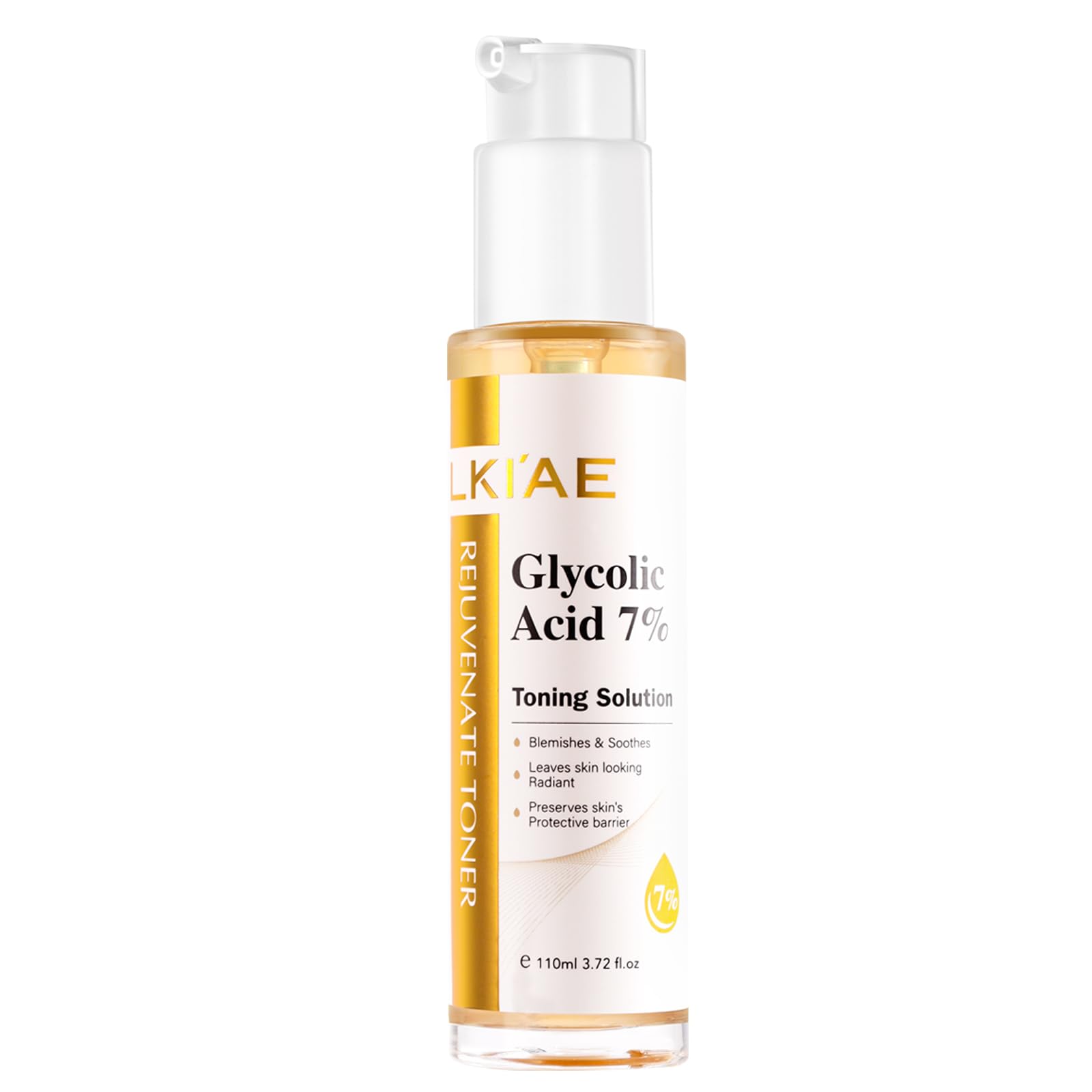 Reveal radiant, blemish-free skin with LKIAE's Glycolic Acid 7 Toning Solution. This potent yet gentle formula harnesses the power of glycolic acid to slough off dull, dead skin cells, leaving your complexion looking refreshed and luminous. Blemishes and imperfections are soothed, while your skin's protective barrier is reinforced. With regular use, you'll notice a more cleaner, radiant skin. This 3.72 fl oz bottle is perfect for incorporating into your daily skincare routine. Unveil your most beautiful, glowing skin. VEILIGHEIDSWAARSCHUWING For external use only. Avoid direct contact with eyes. Discontinue use if irritation or redness occurs. Keep out of reach of childrenMULTI-BENEFIT FORMULA: In addition to exfoliating, it helps refine skin texture and improve overall complexion. PROTECTIVE BARRIER: Helps protect the skin's natural protective barrier against moisture loss and environmental damage. GENTLE CLEANSING: Gentle yet effective formula removes impurities and excess oil from the face, Unclogs pores, leaving your complexion clean and refreshed. GLOWING: Formulated with Glutathione and Niacinamide to remove dull, dead skin cells, leaving your skin looking radiant and energized. POTENT FORMULA: This 7 glycolic acid toner gently exfoliates, minimizes blemishes and soothes the skin.LKIAE Glycolic Acid 7 Face Toner, Brightening, Hydration, Nourishing, Soothe Skin, Reduce Fine Lines, Protect Skin Barrier, For Women and Men, 110 ml (Pack of 1) Reveal radiant, blemish-free skin with LKIAE's Glycolic Acid 7 Toning Solution. This potent yet gentle formula harnesses the power of glycolic acid to slough off dull, dead skin cells, leaving your complexion looking refreshed and luminous. Blemishes and imperfections are soothed, while your skin's protective barrier is reinforced. With regular use, you'll notice a more cleaner, radiant skin. This 3.72 fl oz bottle is perfect for incorporating into your daily skincare routine. Unveil your most beautiful, glowing skin. VEILIGHEIDSWAARSCHUWING For external use only. Avoid direct contact with eyes. Discontinue use if irritation or redness occurs. Keep out of reach of childrenMULTI-BENEFIT FORMULA: In addition to exfoliating, it helps refine skin texture and improve overall complexion. PROTECTIVE BARRIER: Helps protect the skin's natural protective barrier against moisture loss and environmental damage. GENTLE CLEANSING: Gentle yet effective formula removes impurities and excess oil from the face, Unclogs pores, leaving your complexion clean and refreshed. GLOWING: Formulated with Glutathione and Niacinamide to remove dull, dead skin cells, leaving your skin looking radiant and energized. POTENT FORMULA: This 7 glycolic acid toner gently exfoliates, minimizes blemishes and soothes the skin.