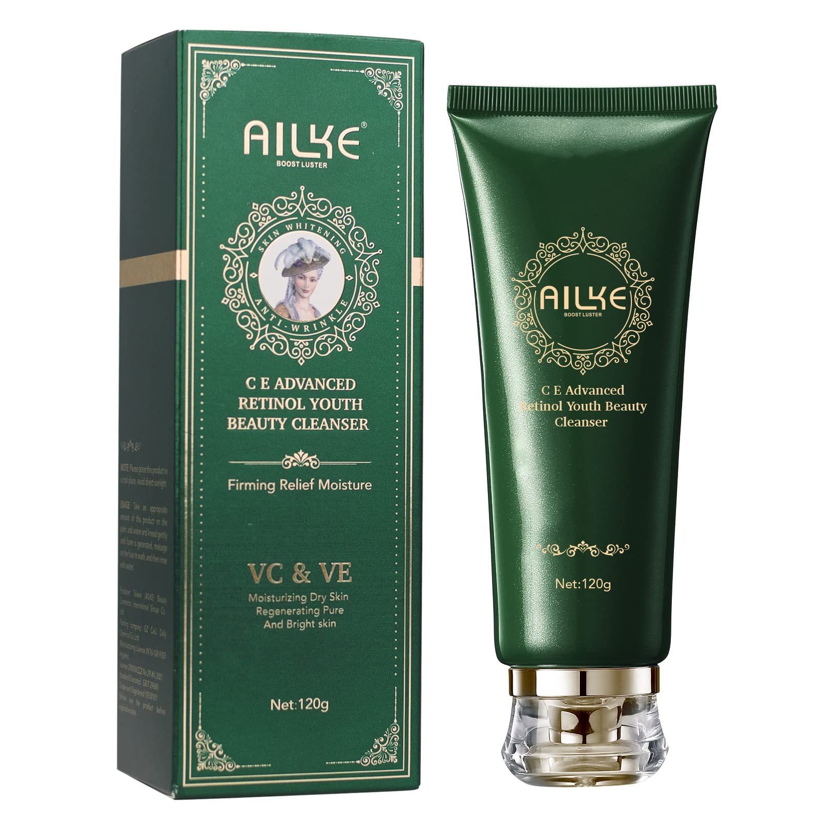 AILKE Vitamin C/E Advanced Retinol Youth Beauty Cleanser Deeply Clean Stains Firming Moisturizing Brightening Gentle Face Wash for Women 4.3 oz (Pack of 1)