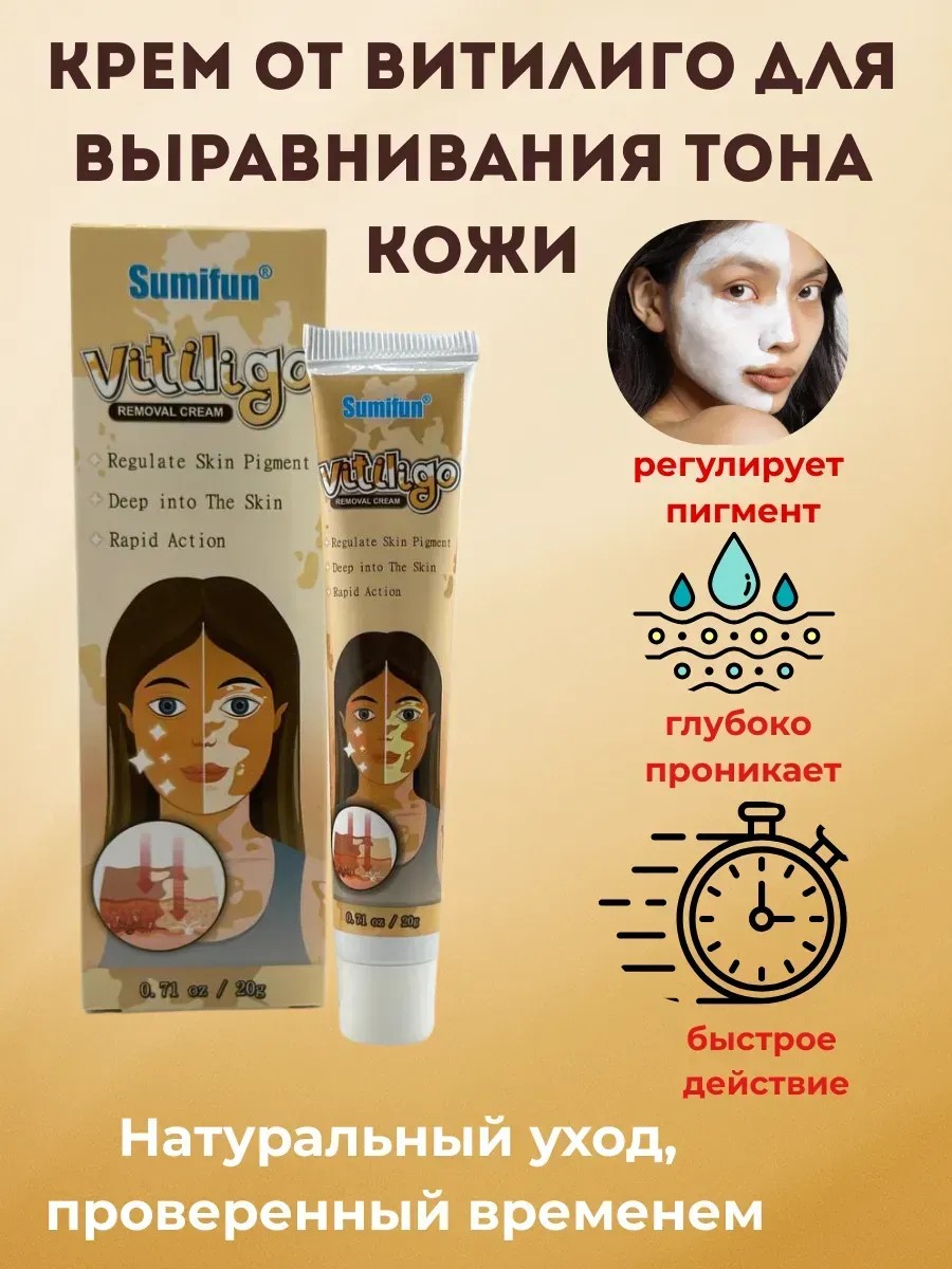 Крем для витилиго — средство для восстановления и выравнивания пигментации кожи. Формула на основе растительных экстрактов (Vitex Chinensis, Cortex Dictamni, Sophora Flavescens, Rhubarb и др.) мягко воздействует на зоны нарушения цвета кожи, способствует регенерации клеток и поддерживает естественный баланс меланина. Подходит для чувствительной и сухой кожи, не вызывает раздражения.