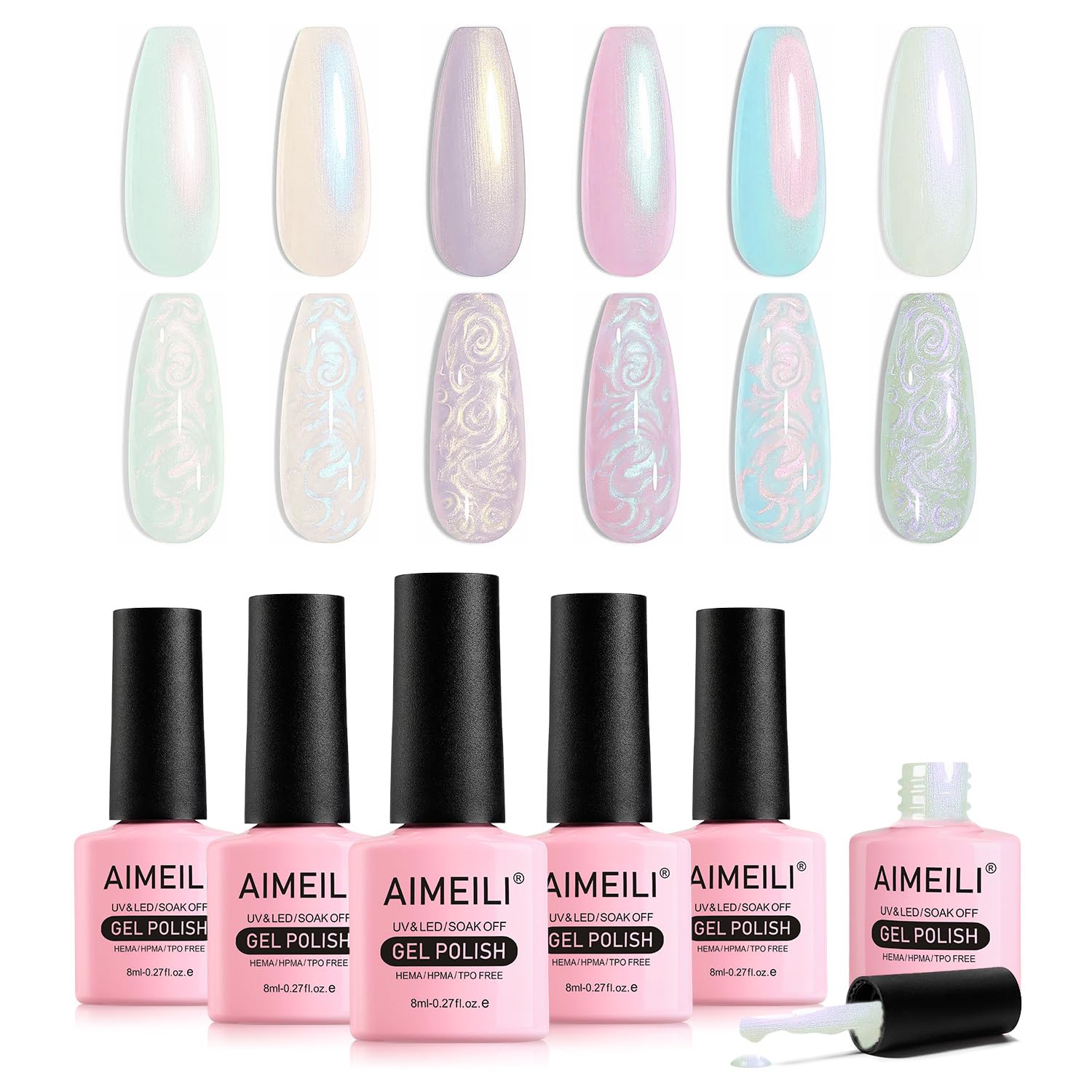 ?hema-free gel nail polish: Hema-free, HPMA-free, TPO-free formula of gel nail polish for nail art make it gentle to apply your nails safer and healthier.?Vegan, free of animal experiments: Aimeili Gel Nailack products are vegan, cruel-free, safe, non-toxic, environmentally friendly and reliable, since 90% of raw materials are manufactured in the USA and Europe and correspond to EU security regulations.? Lang: long for 21+ days with a perfect shine.No notches, chips or spots.Hardens under the UV or LED lamp (curing times vary depending on the lighting system).? Einy pearl effect: with a nice shine and light shimmer effect, shifts colors based on viewing angles.Depending on the basic color, can achieve different effects in order to meet different needs fairly.We recommend using white gel nail polish before using the Perl Gel nail polish.? AND Colors: 6 magical colors Pearl effect gel nail polish, 8 ml per bottle.With these carefully selected fashion colors you can not only create charming and shiny beautiful nails, but also an ideal gift for yourself, friends, family, etc. (Note: Please carry out a skin test each time).?HEMA-FREE Gel Nagellack: HEMA-freie, HPMA-freie, TPO-freie Formel von Gel Nagellack für Nagelkunst machen es sanfter, um Ihre Nägel sicherer und gesünder gelten. ?VEGAN, TIERVERSUCHSFREI: AIMEILI Gel Nagellack Produkte sind vegan, grausam-frei, sicher, ungiftig, umweltfreundlich und zuverlässig, da 90% der Rohstoffe in den USA und Europa hergestellt werden und den EU-Sicherheitsvorschriften entsprechen. ?Lang anhaltend: Lang anhaltend für 21+ Tage mit perfektem Glanz. Keine Kerben, Chips oder Flecken. Härtet unter UV- oder LED-Lampe aus (Aushärtungszeiten variieren je nach Beleuchtungssystem). ?Einzigartiger Perleffekt: Mit schönem Glanz und leichtem Schimmereffekt, verschiebt Farben basierend auf Betrachtungswinkeln. Kann je nach Grundfarbe unterschiedliche Effekte erzielen, um verschiedenen Bedürfnissen gerecht zu erfüllen. Wir empfehlen die Verwendung von weißem Gel-Nagellack vor der Anwendung des Perl-Gel-Nagellacks. ?Reiche Farben: 6 Magische Farben Pearl Effect Gel Nagellack, 8 ml pro Flasche. Mit diesen sorgfältig ausgewählten modischen Farben können Sie nicht nur charmante und glänzende schöne Nägel kreieren, sondern auch ein ideales Geschenk für sich selbst, Freunde, Familie usw. (Hinweis: Bitte führen Sie vor der Maniküre JEDES MAL einen HAUTTEST durch).AIMEILI Pearl Effect Gel Nail Polish HEMA Free UV Lack Gel Nagellack Set 8ml 6 Farben Pearl UV Nagellack Set Farbgel Gellack Soak Off Gel Nail Polish Set Maniküre Gift Kit 42 KIT6-42_8ML