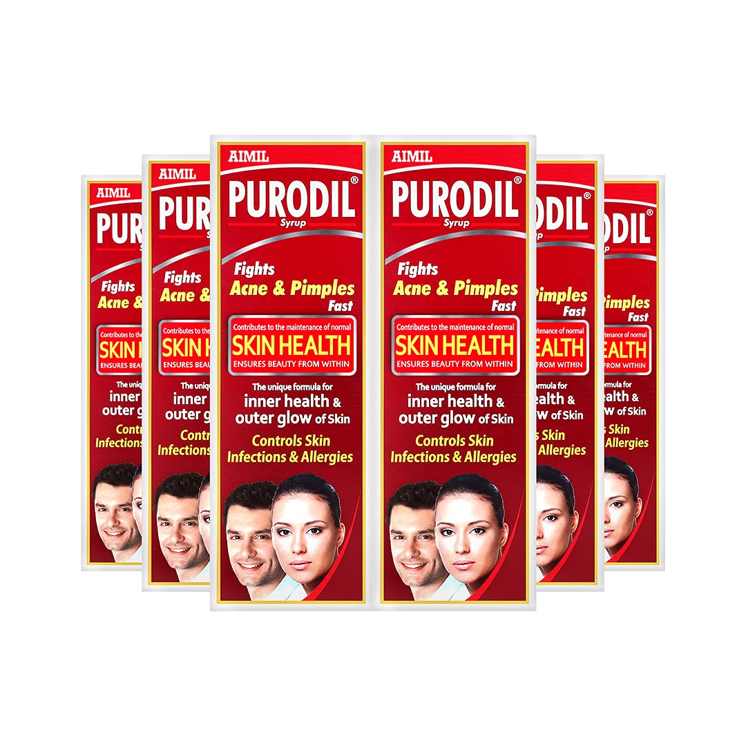 Aimil AIMIL Purodil Skin Syrup for Pimple & Acne Free | Anti-Allergic & Anti-Microbial Syrup - 200ml (Pack of 6)